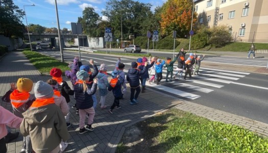 Dzisiaj dwie najstarsze grupy trenowały jak bezpiecznie i prawidłowo poruszać się na pasach oraz wzdłuż ulicy.