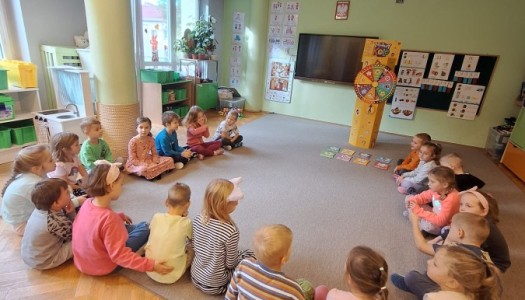 Zabawy w kole u Tropicieli. Dzieci miały za zadanie zakręcić kołem, a następnie wybierały kartę z odpowiedniej kategorii i wykonywały zadani...