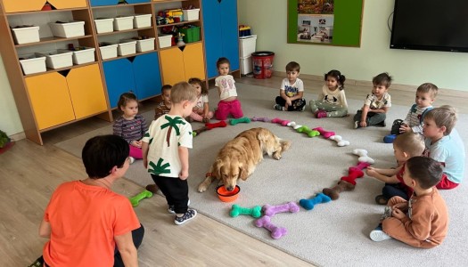 Na dzisiejszych zajęciach z Dogoterapii dzieci utrwalały nazwy kolorów oraz wielkości( mała kość, średnia kość i duża kość). Przypominały so...