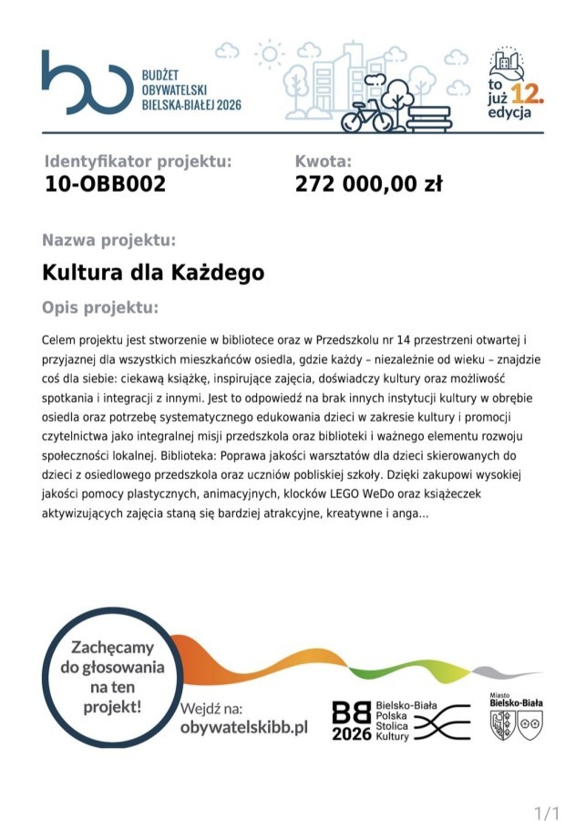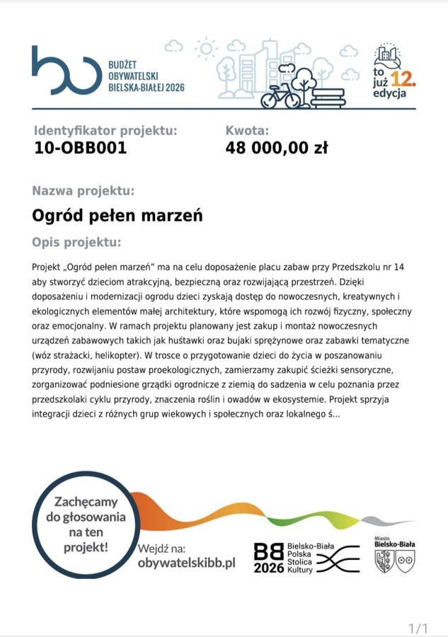 Drodzy Państwo, bardzo prosimy o głosy na dwa projekty w Budżecie Obywatelskim: