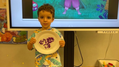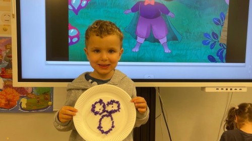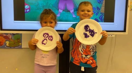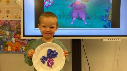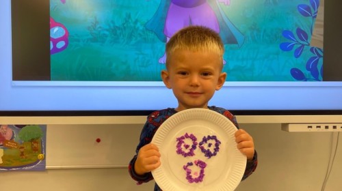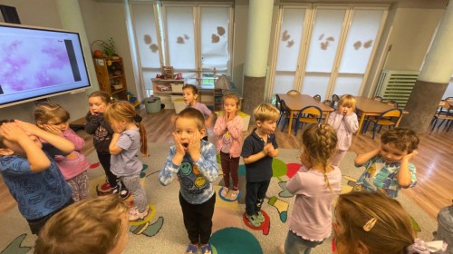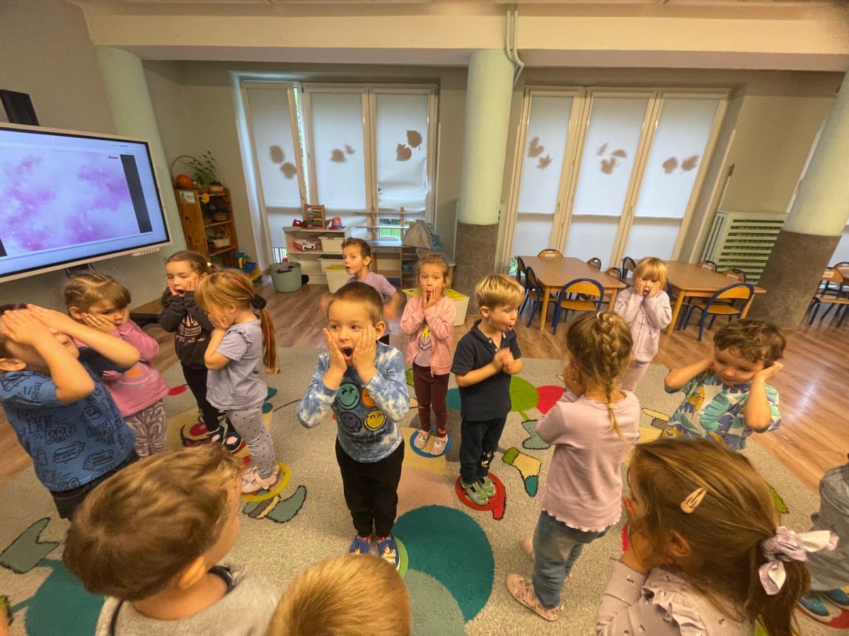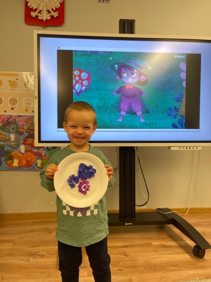 W grupie Słoneczek realizowaliśmy dziś kolejny etap projektu pt. "Czuciaki z Krainy Emocji". Tym razem poznaliśmy emocję zdziwienia oraz jej wyjątkowego mieszkańca- Pana Łał, który nosi pelerynę ozdobioną błyszczącymi gwiazdkami i mieszka na Fioletowej Wyspie. Podczas zajęć rozmawialiśmy o tym, kiedy odczuwamy zdziwienie, jak wygląda nasza twarz w takiej chwili i co może nas zaskoczyć. Dzieci wysłuchały opowiadania, w którym główny bohater spotkał Pana Łał i nauczył się rozpoznawać emocję zdziwienia. Na zakończenie dzieci wykonały pracę plastyczną- twarz ukazującą zdziwenie z fioletowej bibuły. :)