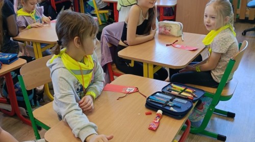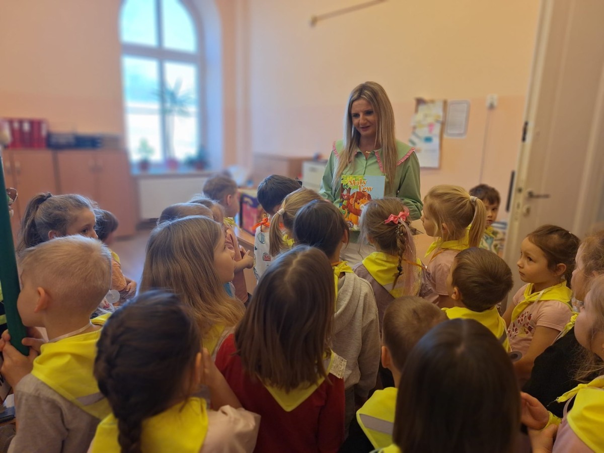Na Dniach Otwartych w Szkole Podstawowej nr 9 w Bielsku-Białej grupa Tropiciele z naszego przedszkola wzięła udział w warsztatach sportowych, zwiedziła szkołę, zaprojektowała własne zakładki do książek oraz obejrzała przedstawienie przygotowane przez uczennice starszych klas. Był to owocnie spędzony czas. Dziękujemy Pani Dyrektor SP 9 za zaproszenie! :)