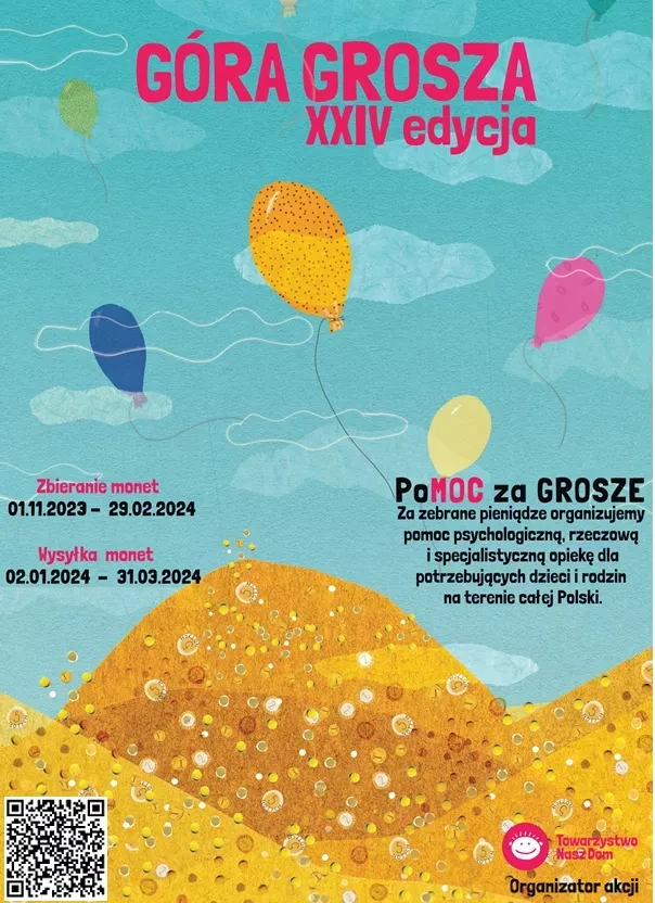 Szanowni Państwo, z całego serca pragniemy podziękować za zaangażowanie i wsparcie okazane podczas zbiórki " Góra Grosza". Dzięki Państwa hojności oraz chęci niesienia pomocy udało nam się wspólnie zebrać kwotę 349 złotych. Każdy przekazany grosz ma ogromne znaczenie i przyczynia się do wsparcia dzieci znajdujących się w trudnej sytuacji życiowej. Paczki z grosikami już zapakowane, wyruszają w podróż :)
