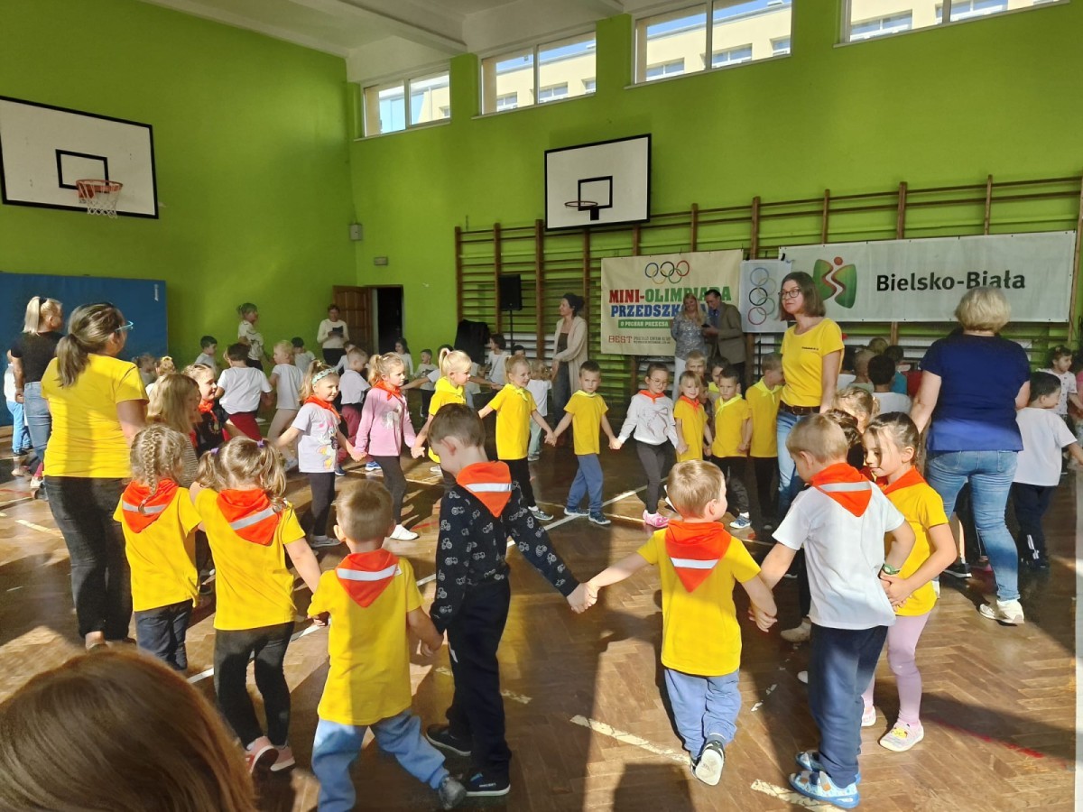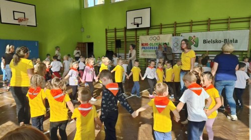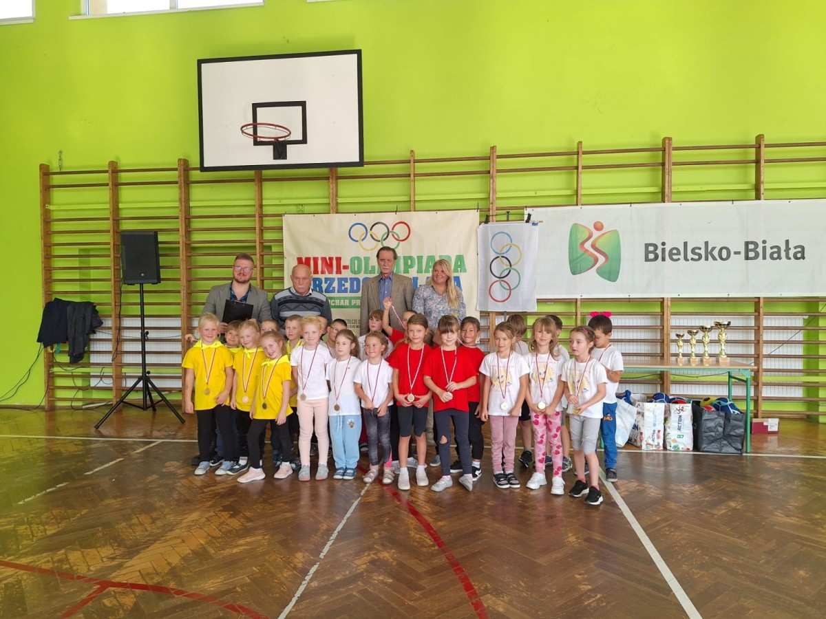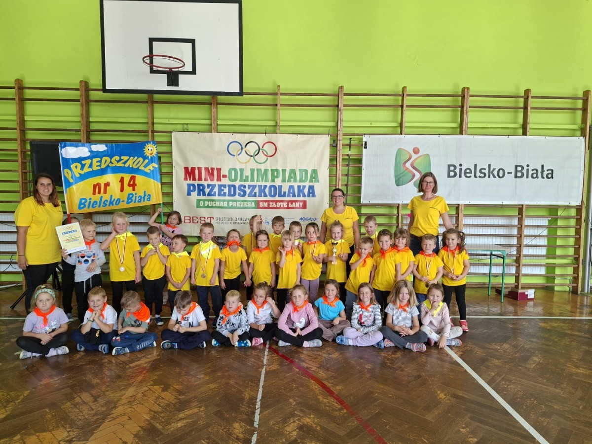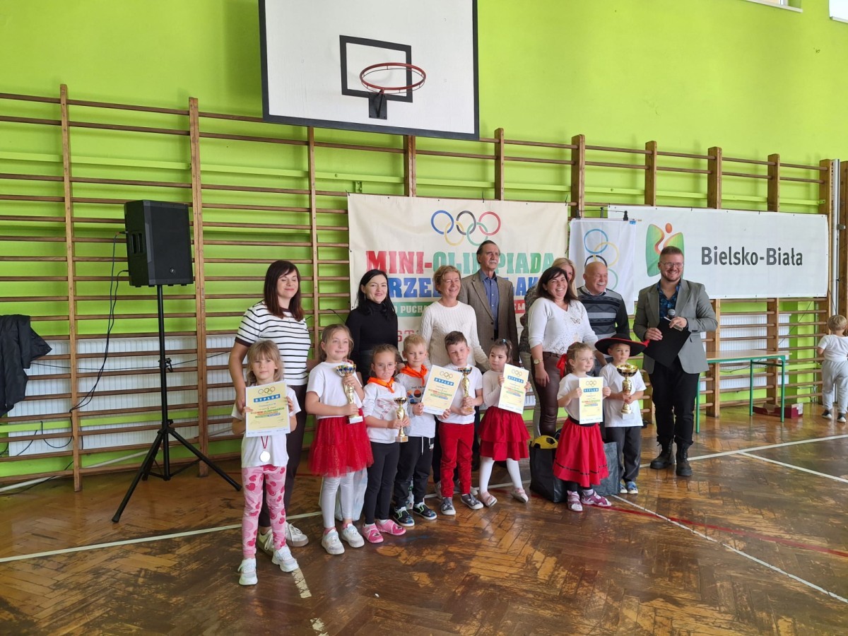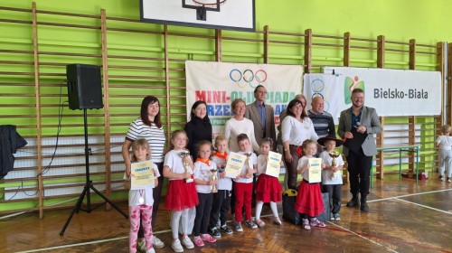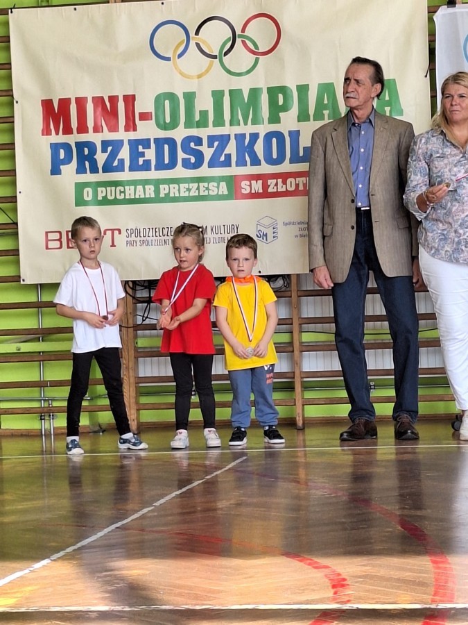 Dzisiaj dzieci ze Słoneczek i Tropicieli wzięły udział w Mini Olimpiadzie organizowanej przez SCK Best Złote Łany w Szkole Podstawowej nr 33 w Bielsku-Białej. Wybrane dzieci z obu grup wzięły udział w konkurencjach sportowych, w których zdobyły następujące miejsca: