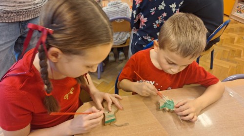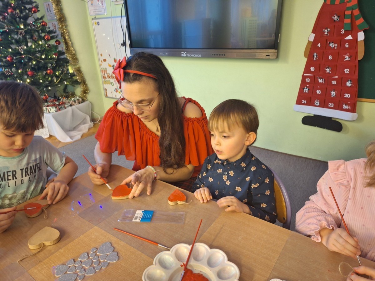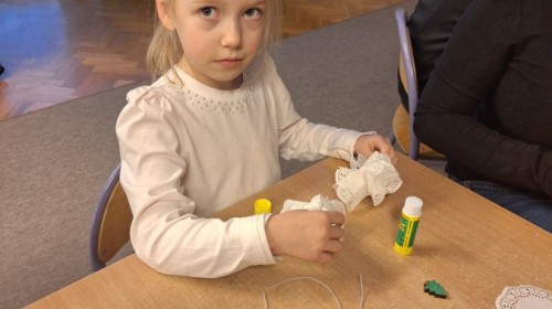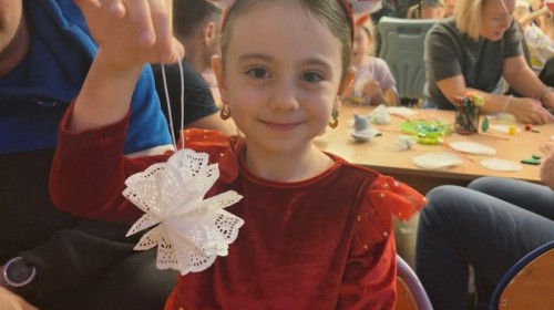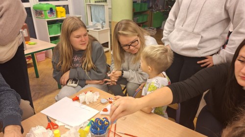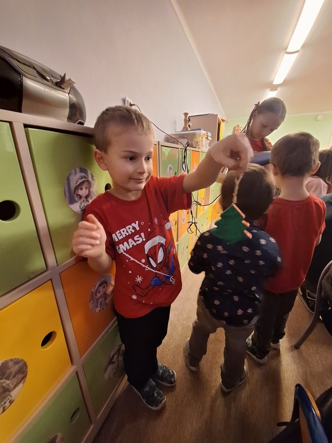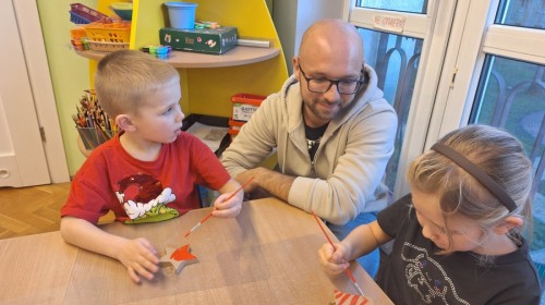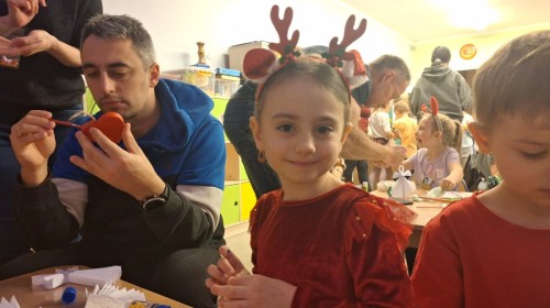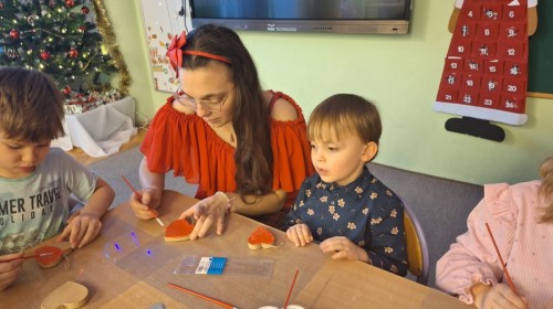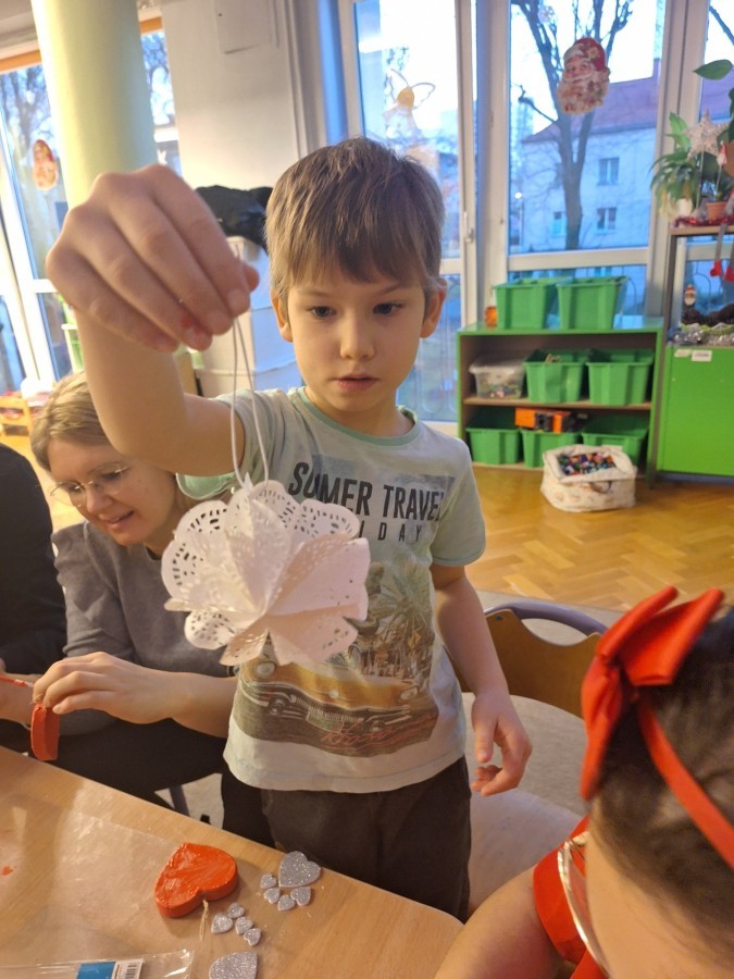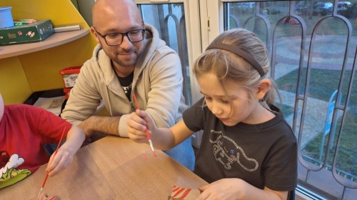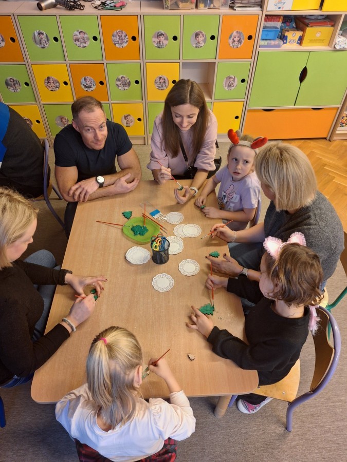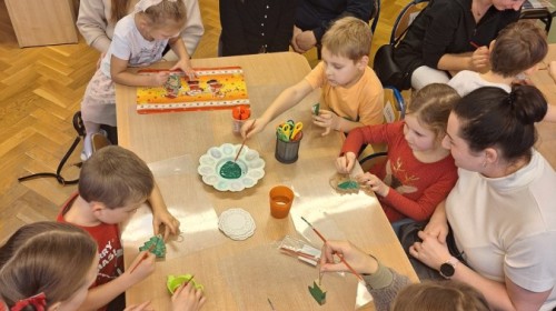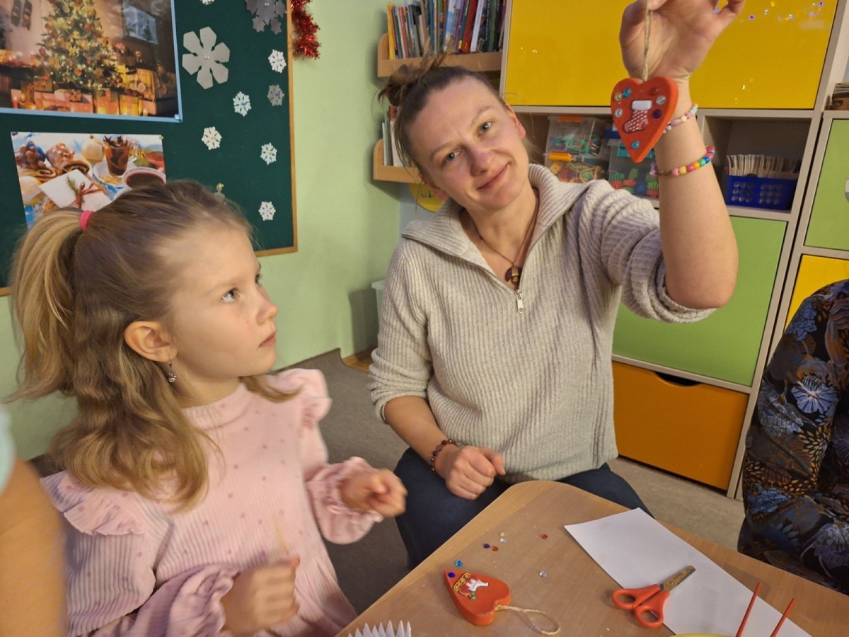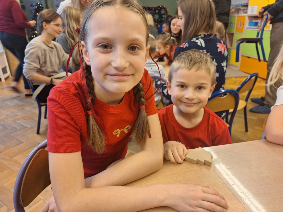 Dzisiejsze spotkanie świąteczne rozpoczęliśmy od pięknych i wzruszających występów dzieci, następnie zaprosiliśmy Rodziców do części plastycznej- malowaliśmy drewniane zawieszki, wykonaliśmy gwiazdki z serwetek oraz aniołki z papieru.