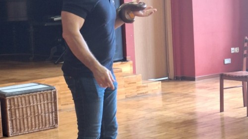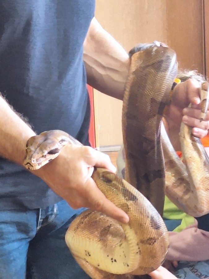 Podczas warsztatów dzieci miały okazję zobaczyć z bliska żywego węża, poznać jego zwyczaje oraz dowiedzieć się wielu ciekawostek na temat życia gadów. Prowadzący w bardzo przystępny i ciekawy sposób opowiadał m.in. o tym: gdzie żyją węże, czym się żywią, czy są groźne dla człowieka oraz jak przebiega proces zrzucania skóry.