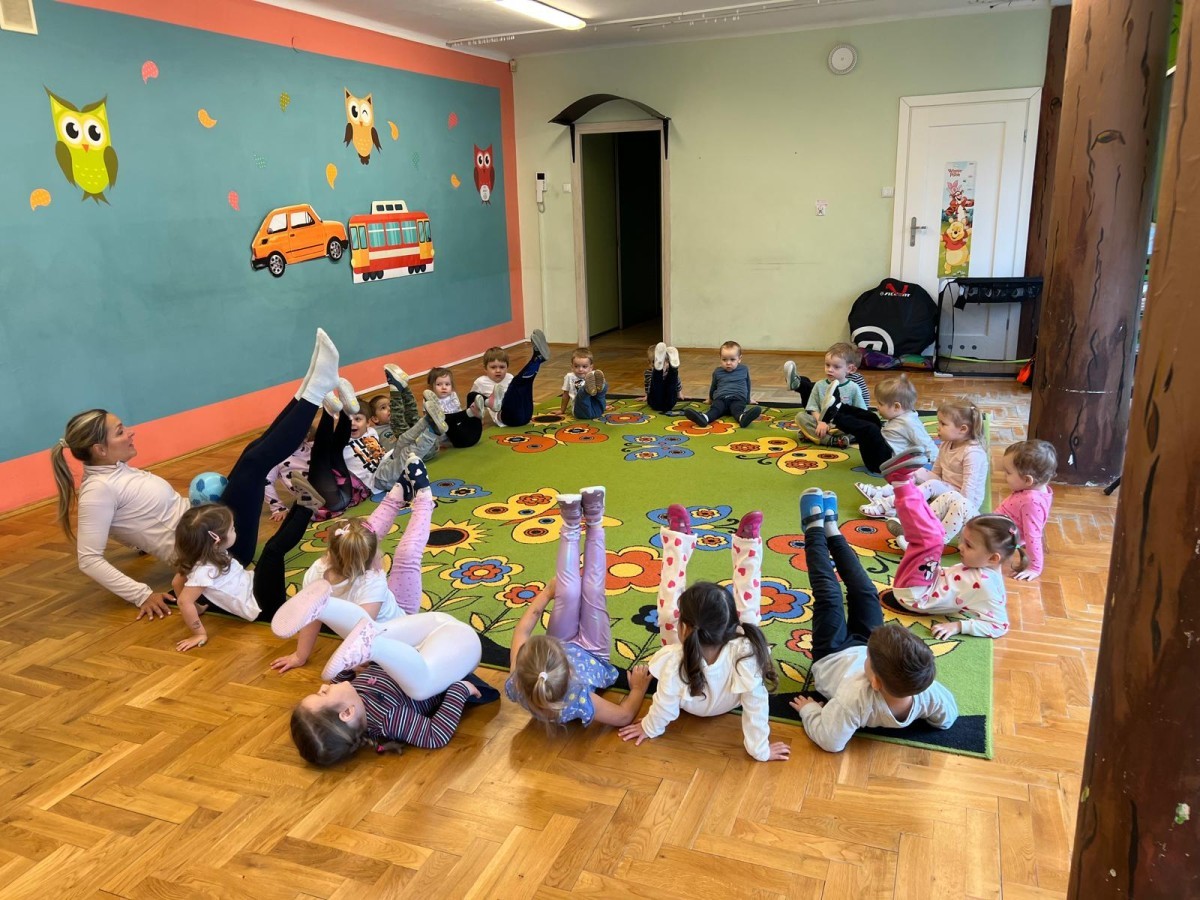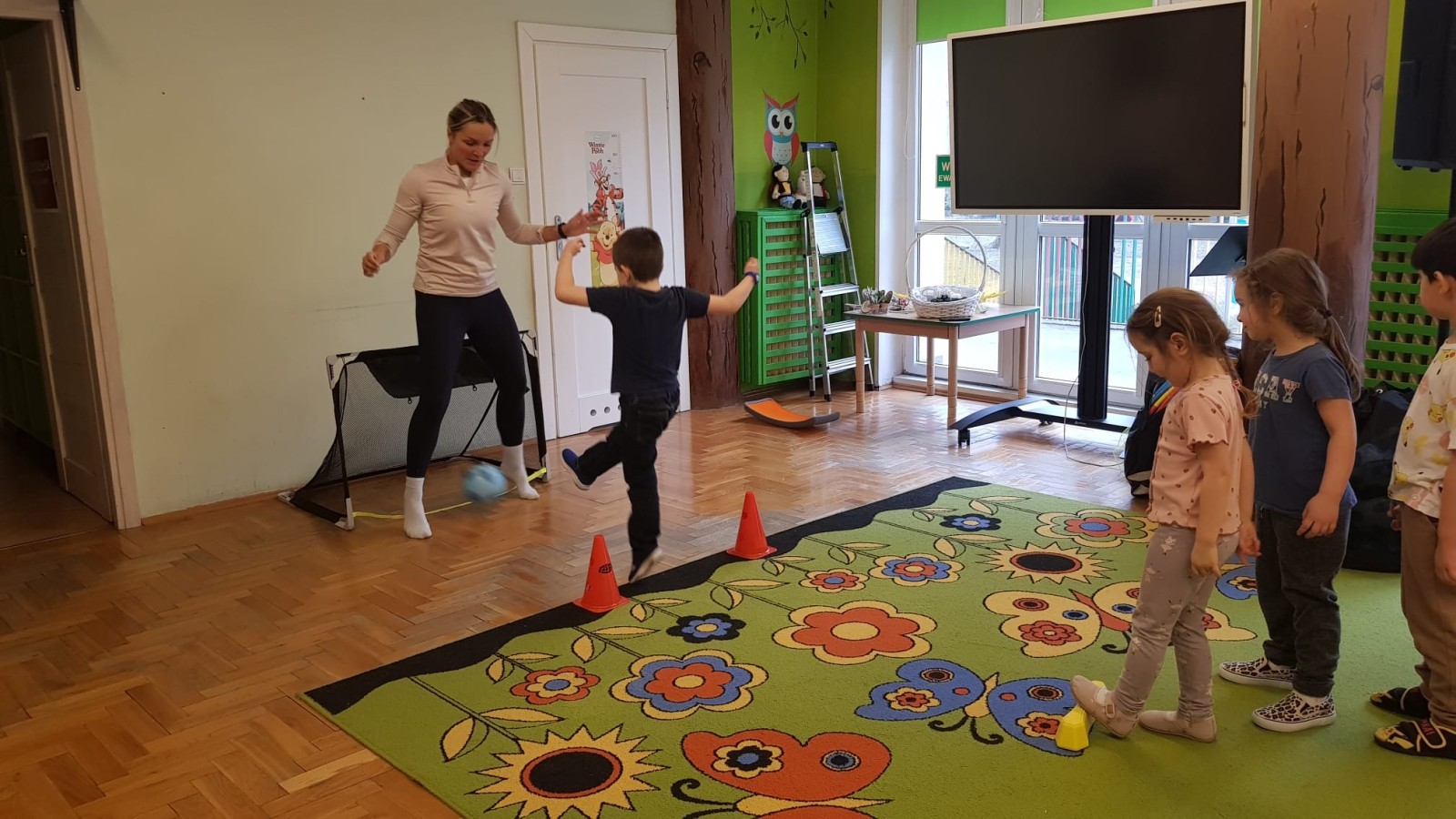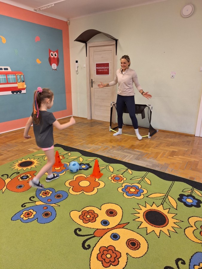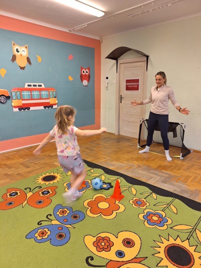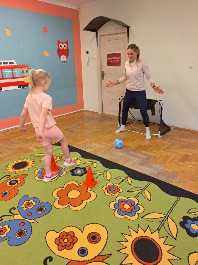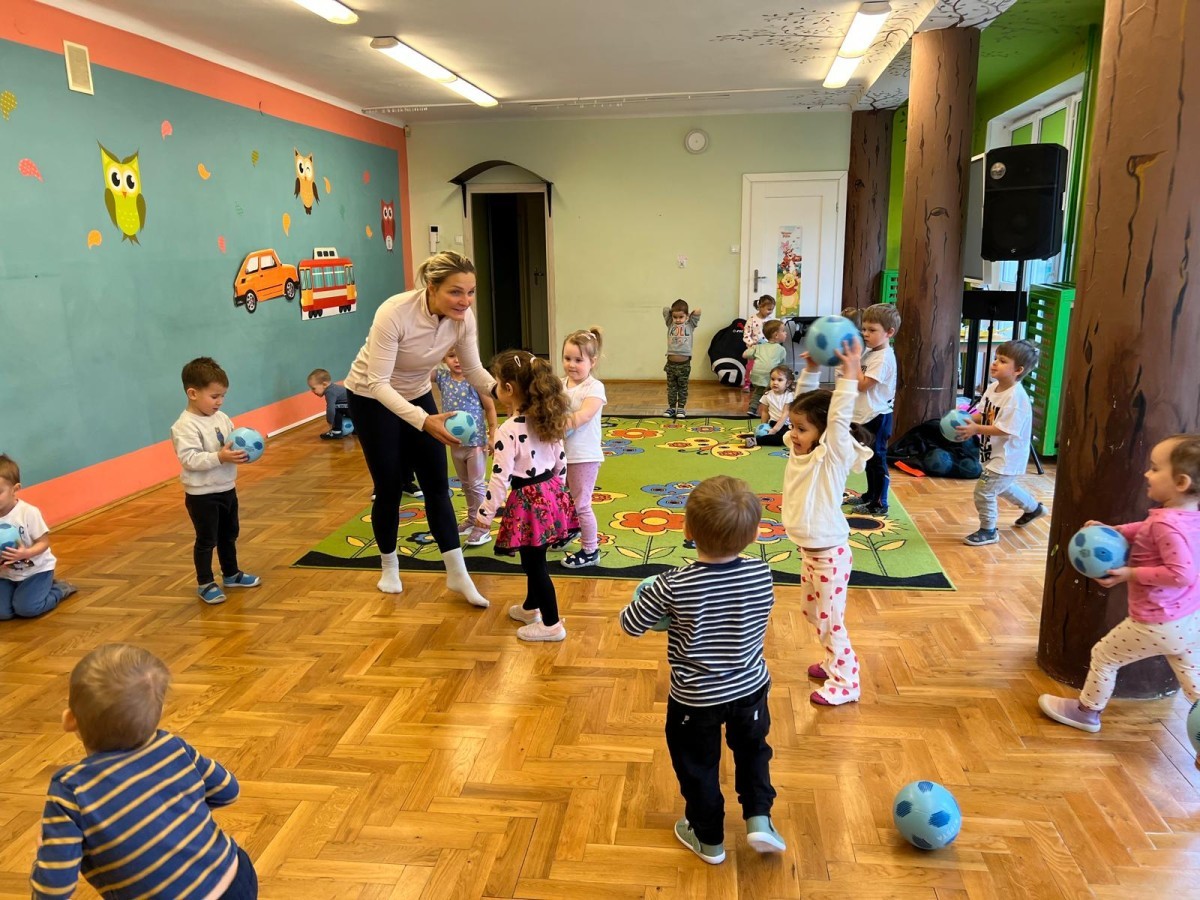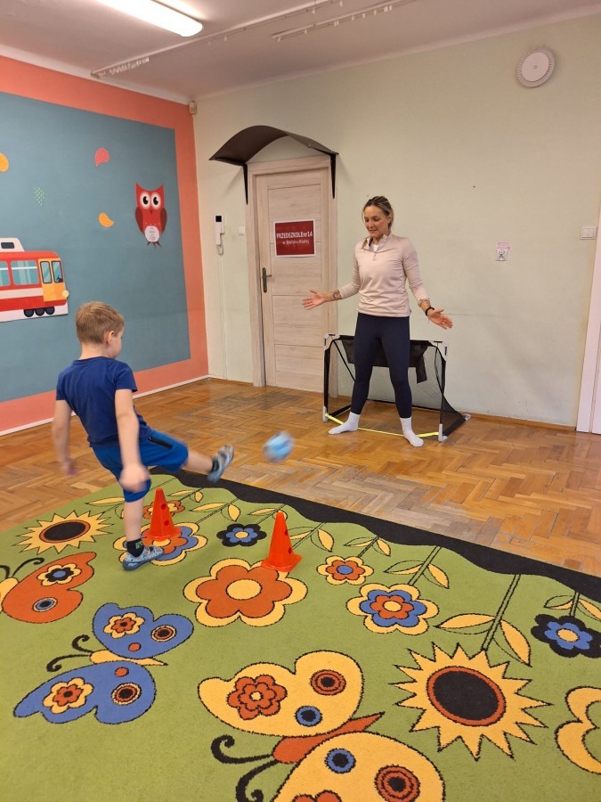 Dzisiaj odbyły się kolejne zajęcia z SuperSmyków. Podczas zajęć sportowych dzieci uczestniczyły w zabawach ruchowych z elementami ćwiczeń ogólnorozwojowych dostosowanych do ich wieku i możliwości. Zajęcia odbywały się w bezpiecznej, przyjaznej przestrzeni i miały formę atrakcyjnej zabawy z wykorzystaniem piłek,chust oraz pachołków. Przedszkolaki ćwiczyły koordynację ruchową, równowagę, zwinność oraz orientację w przestrzeni, wykonując proste zadania, takie jak prowadzenie piłki, toczenie piłki oraz utrzymywanie równowagi na piłce. Wszystkie aktywności były prowadzone pod okiem instruktora, który motywował dzieci do aktywnego udziału :)