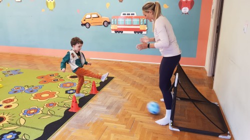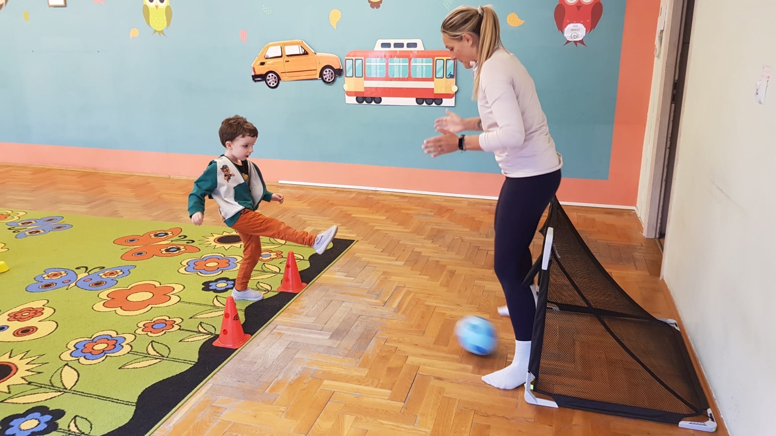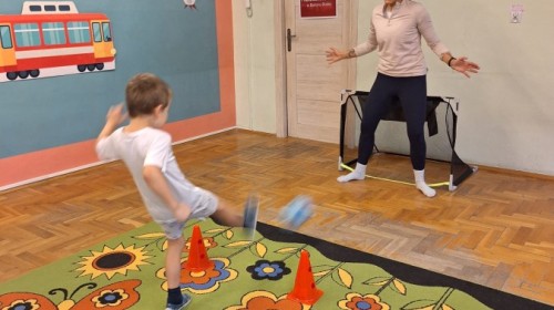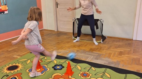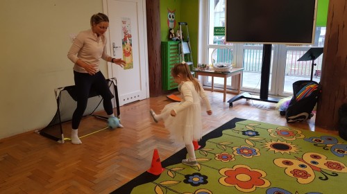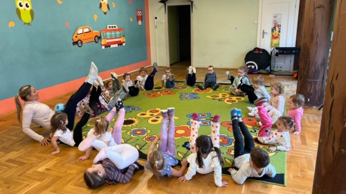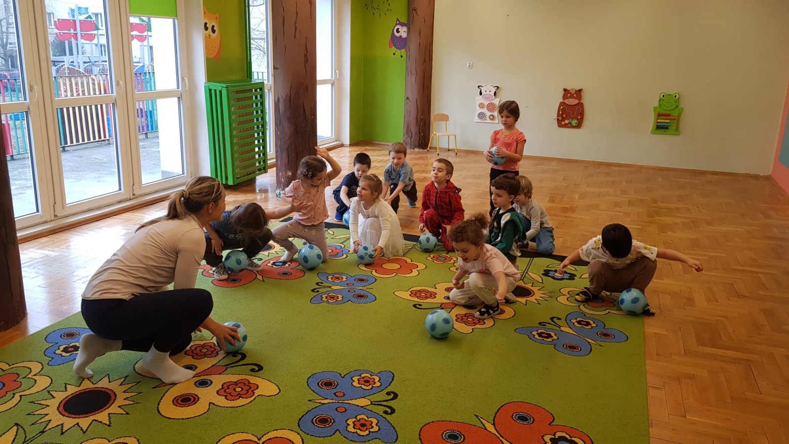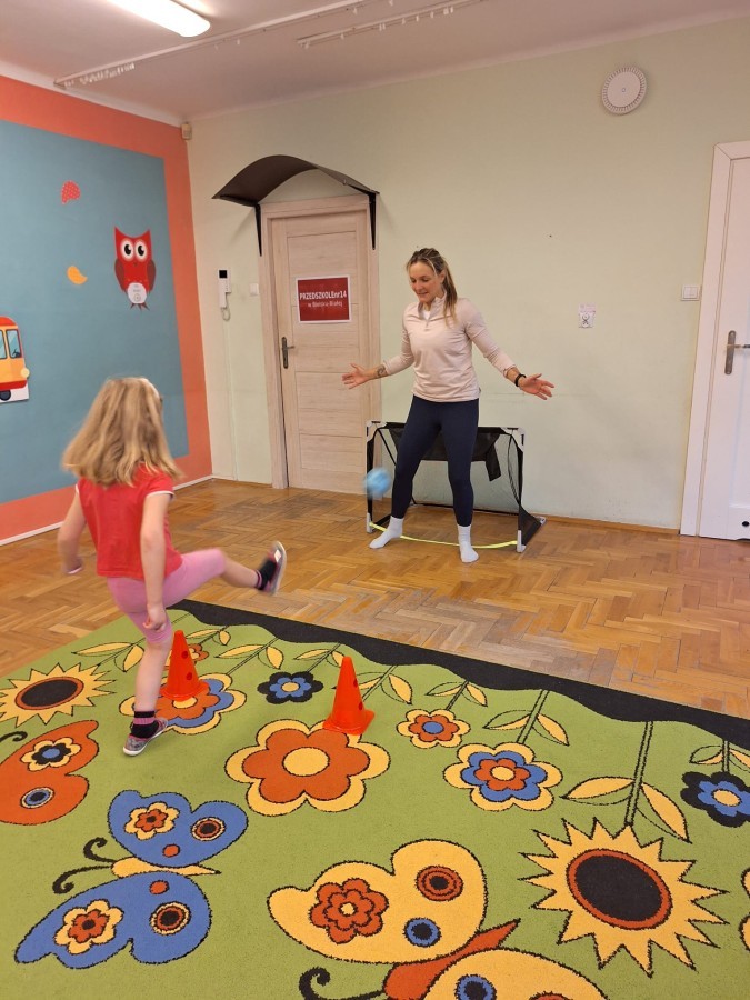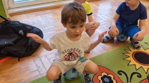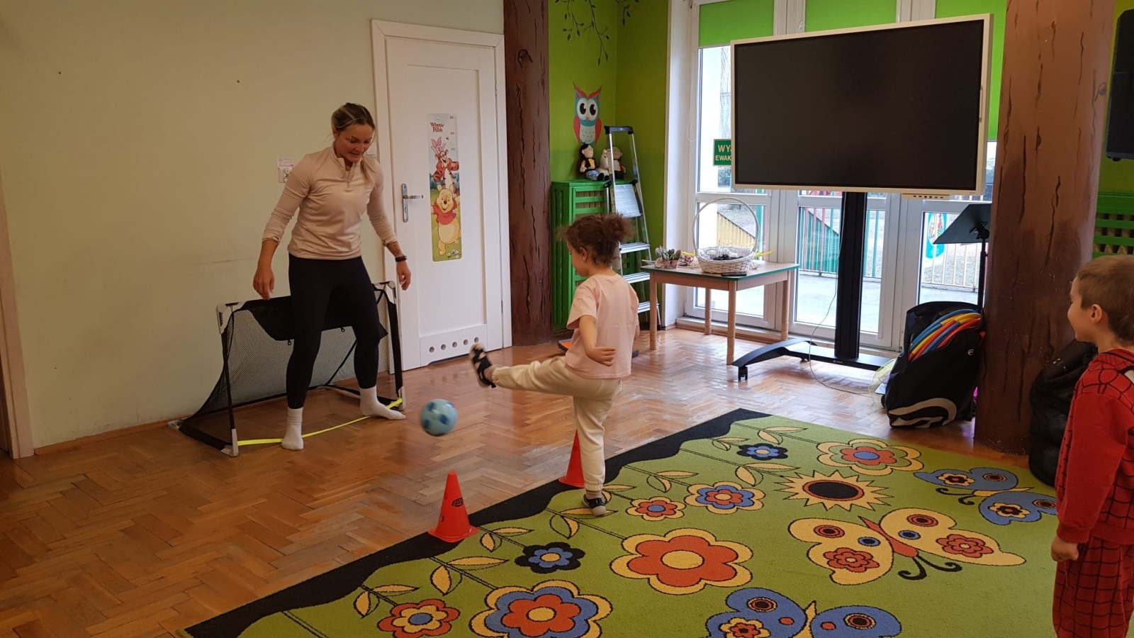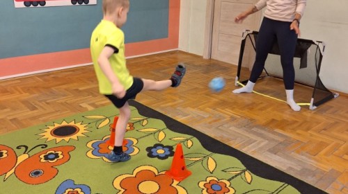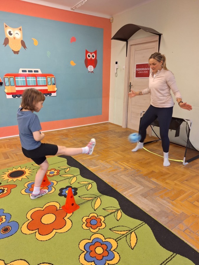 Dzisiaj odbyły się kolejne zajęcia z SuperSmyków. Podczas zajęć sportowych dzieci uczestniczyły w zabawach ruchowych z elementami ćwiczeń ogólnorozwojowych dostosowanych do ich wieku i możliwości. Zajęcia odbywały się w bezpiecznej, przyjaznej przestrzeni i miały formę atrakcyjnej zabawy z wykorzystaniem piłek,chust oraz pachołków. Przedszkolaki ćwiczyły koordynację ruchową, równowagę, zwinność oraz orientację w przestrzeni, wykonując proste zadania, takie jak prowadzenie piłki, toczenie piłki oraz utrzymywanie równowagi na piłce. Wszystkie aktywności były prowadzone pod okiem instruktora, który motywował dzieci do aktywnego udziału :)