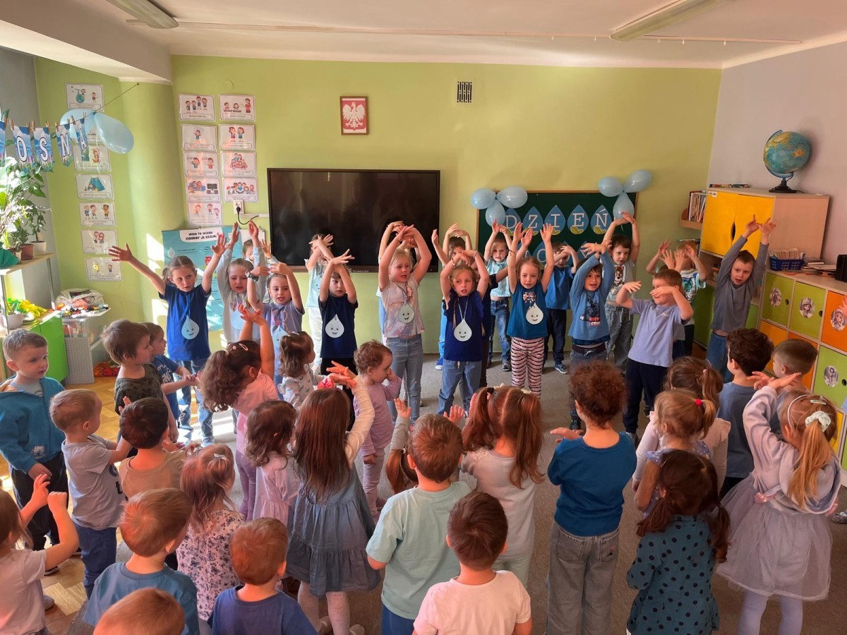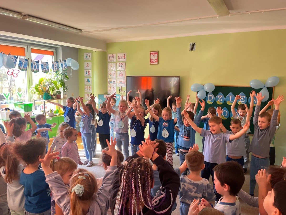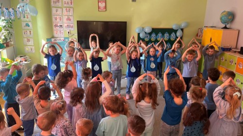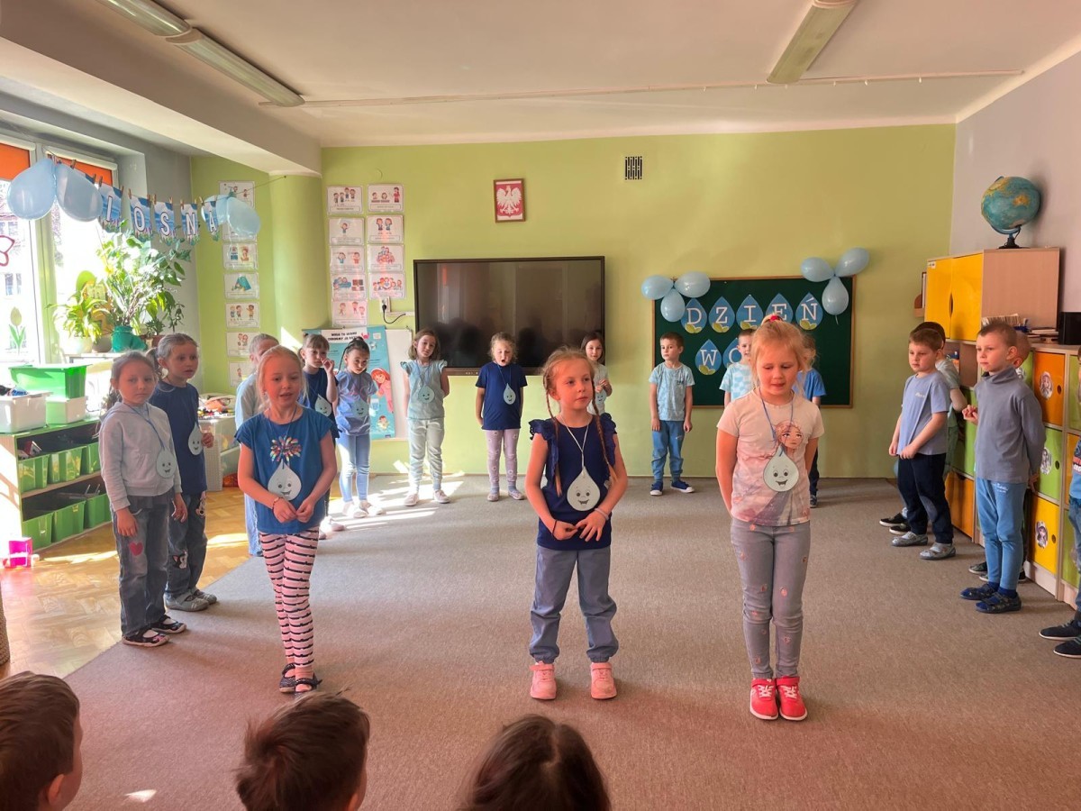 W dniu dzisiejszym w naszym przedszkolu obchodziliśmy Światowy Dzień Wody. Z tej okazji wszystkie dzieci przyszły do przedszkola ubrane na niebiesko. Przedszkolaki z grupy Tropiciele zaprosiły młodszych kolegów i koleżanki na krótkie przedstawienie o wodzie. Zwróciły uwagę na to, że woda jest absolutnie niezbędna do życia wszystkich roślin, zwierząt oraz ludzi. Dzieci podawały również proste sposoby oszczędzania wody podczas codziennych czynności np. zakręcanie kranu podczas mycia rąk albo zębów, branie prysznica zamiast długiej kąpieli itp. Na koniec zaśpiewały piosenkę pt." Ziemia jest darem" z ekologicznym przesłaniem, a później zaprosiły młodszych do wspólnego śpiewu. Po występach wszystkie dzieci mogły napić się wody! :)