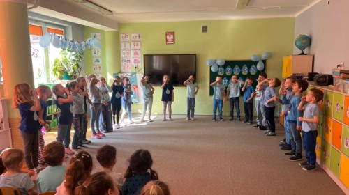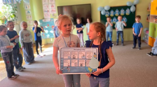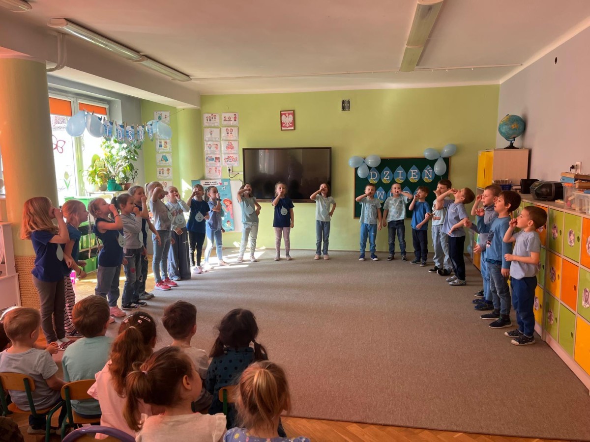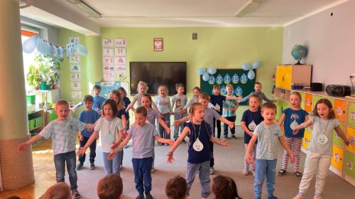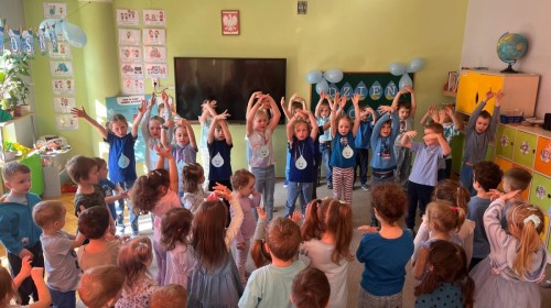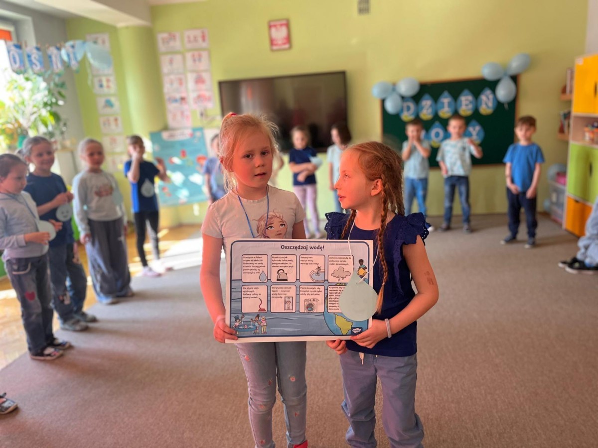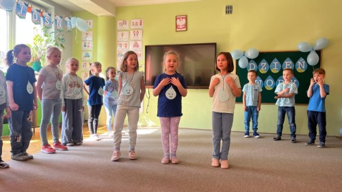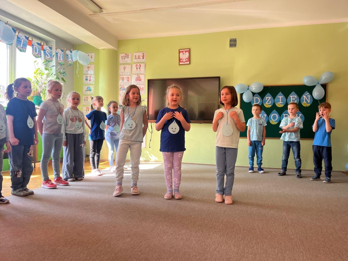 W dniu dzisiejszym w naszym przedszkolu obchodziliśmy Światowy Dzień Wody. Z tej okazji wszystkie dzieci przyszły do przedszkola ubrane na niebiesko. Przedszkolaki z grupy Tropiciele zaprosiły młodszych kolegów i koleżanki na krótkie przedstawienie o wodzie. Zwróciły uwagę na to, że woda jest absolutnie niezbędna do życia wszystkich roślin, zwierząt oraz ludzi. Dzieci podawały również proste sposoby oszczędzania wody podczas codziennych czynności np. zakręcanie kranu podczas mycia rąk albo zębów, branie prysznica zamiast długiej kąpieli itp. Na koniec zaśpiewały piosenkę pt." Ziemia jest darem" z ekologicznym przesłaniem, a później zaprosiły młodszych do wspólnego śpiewu. Po występach wszystkie dzieci mogły napić się wody! :)
