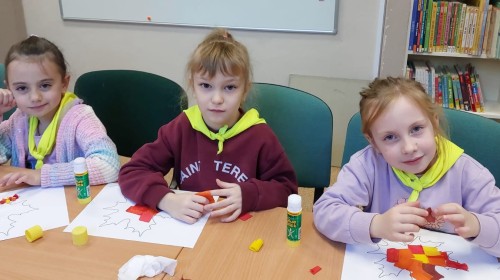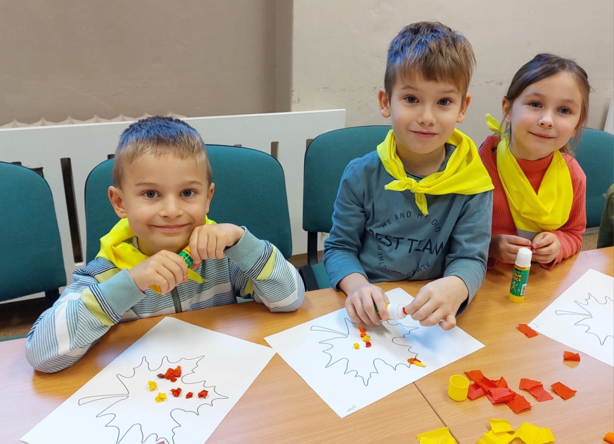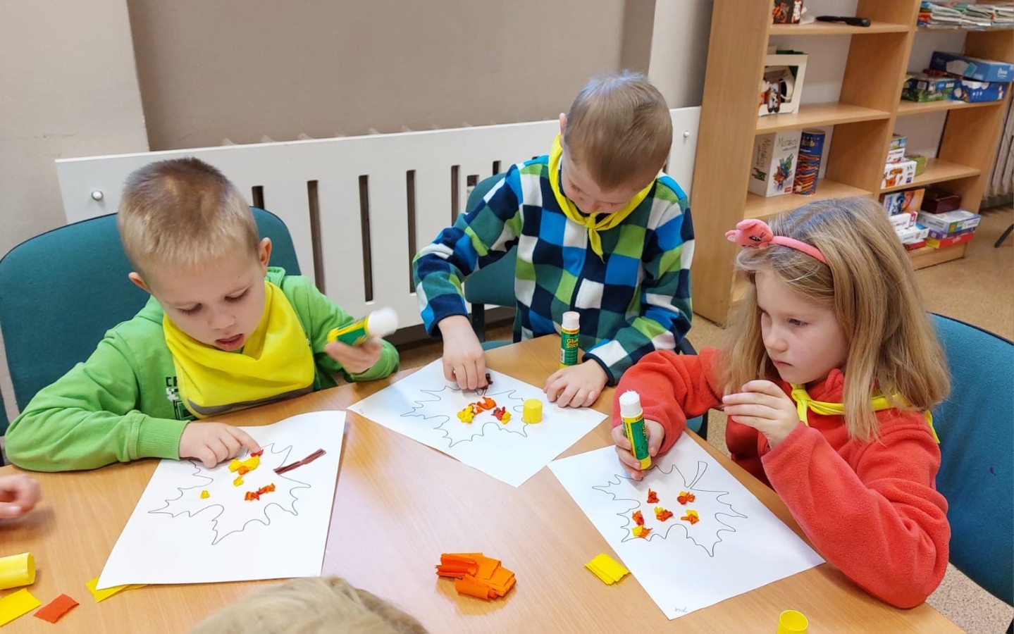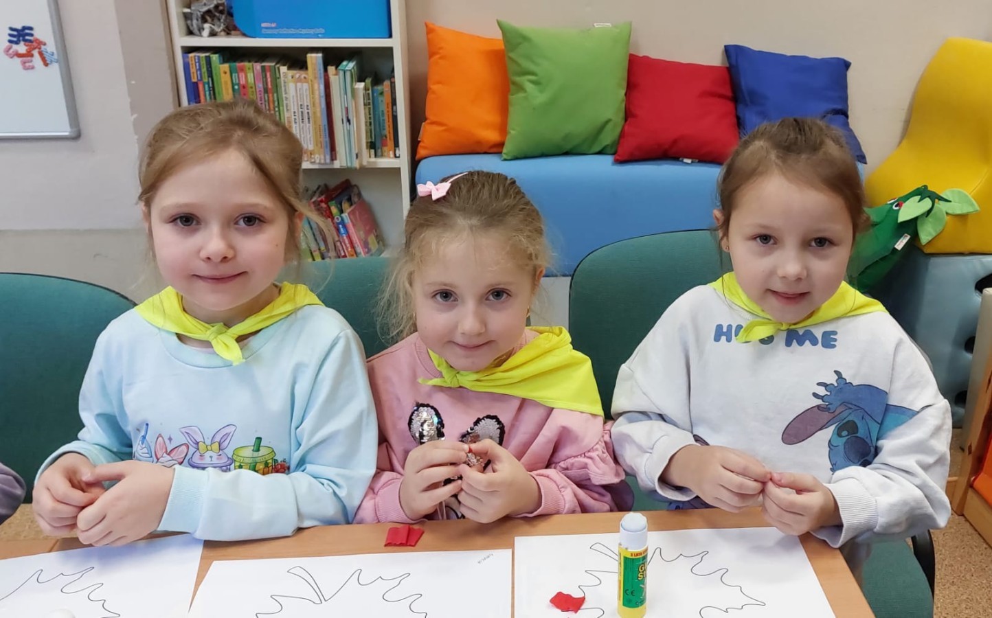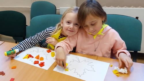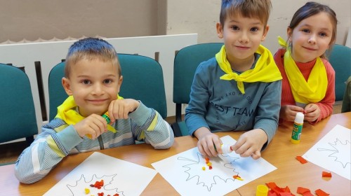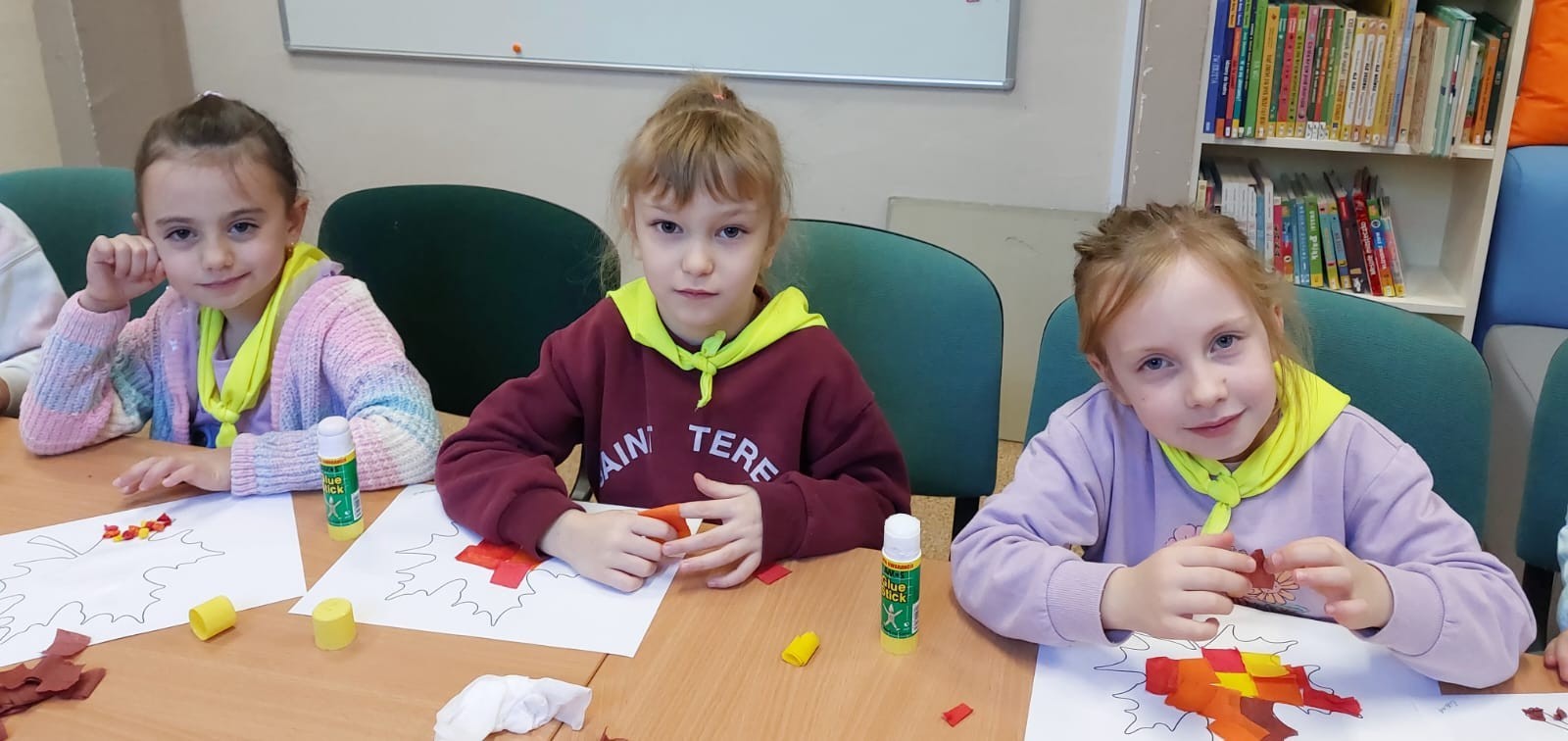 Grupa Tropiciele wybrała się dzisiaj na zajęcia do pobliskiej Biblioteki. Na zajęciach dzieci poznawały różne rodzaje drzew oraz wykonały pracę plastyczną pt. Jesienny liść.