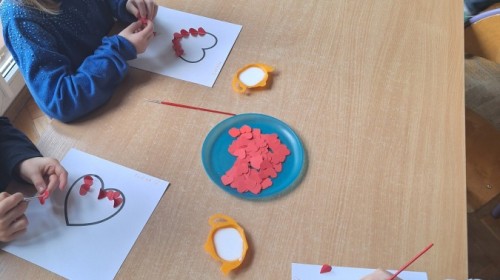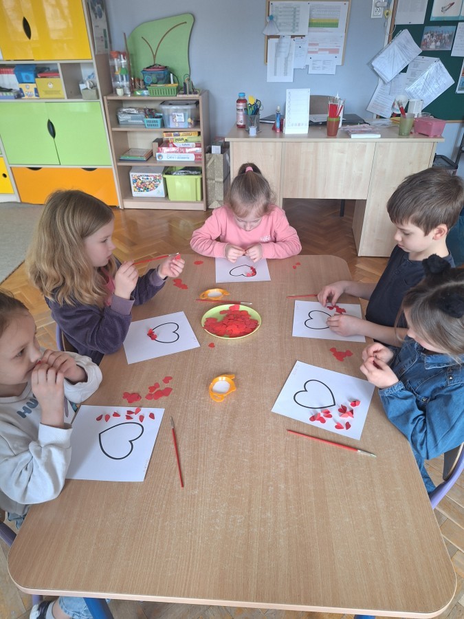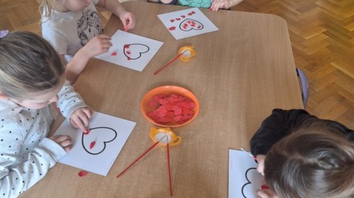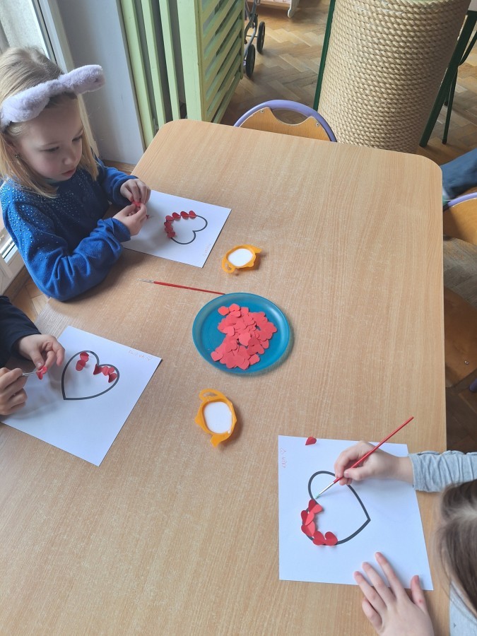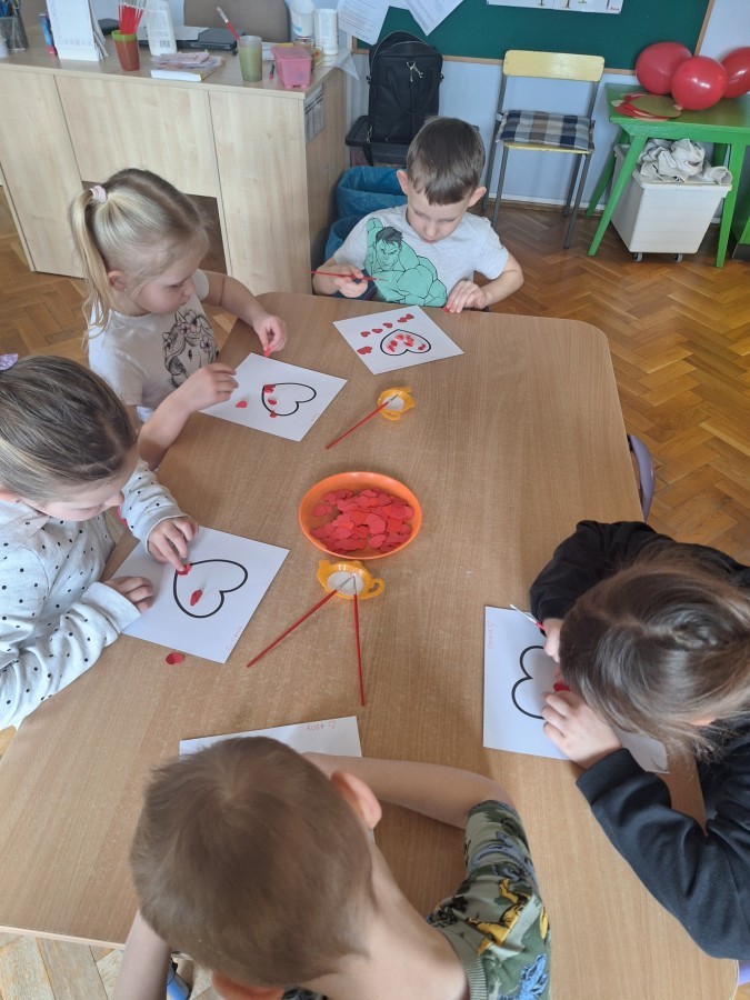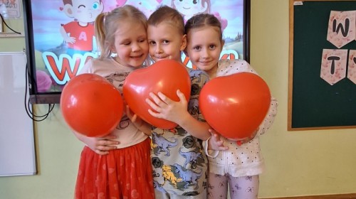 Dzisiaj obchodziliśmy Walentynki. Na zajęciach dowiedzieliśmy się czym jest to święto, trenowaliśmy mówienie sobie miłych rzeczy oraz wykonaliśmy piękne prace plastyczne. Był to dzień pełen radości i przyjaznej atmosfery! :)