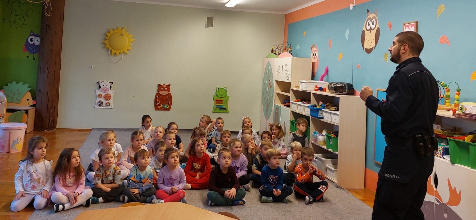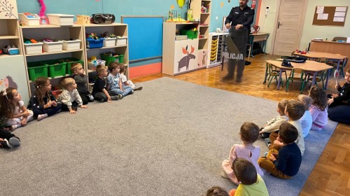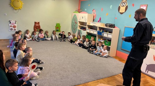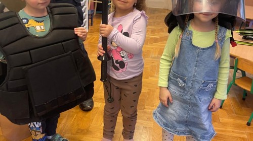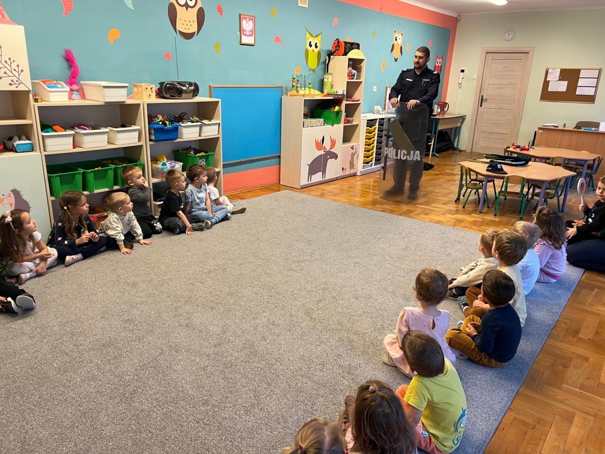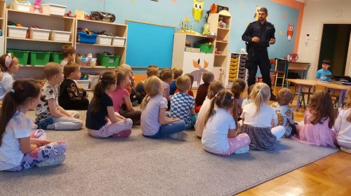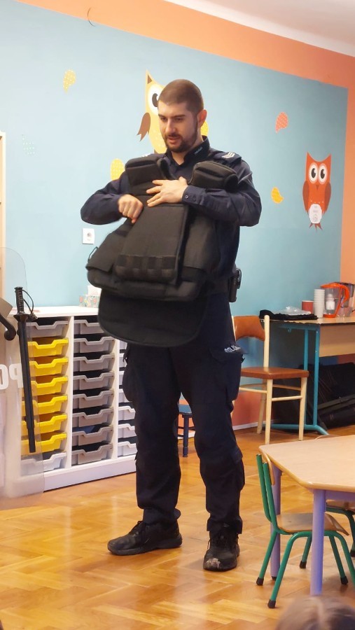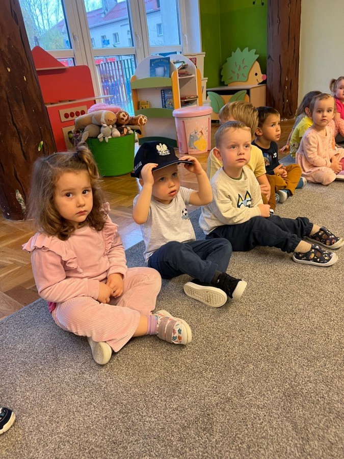Dzisiaj odwiedził nas dzielnicowy Pan Rafał Matlak, który jest Policjantem. Na spotkaniu dzieci dowiedziały się czym jest praca policjanta oraz jak dbać o swoje bezpieczeństwo w domu oraz na drodze. Przedszkolaki mogły także przymierzyć ekwipunek policyjny. Panu Rafałowi serdecznie dziękujemy za wizytę! :)
