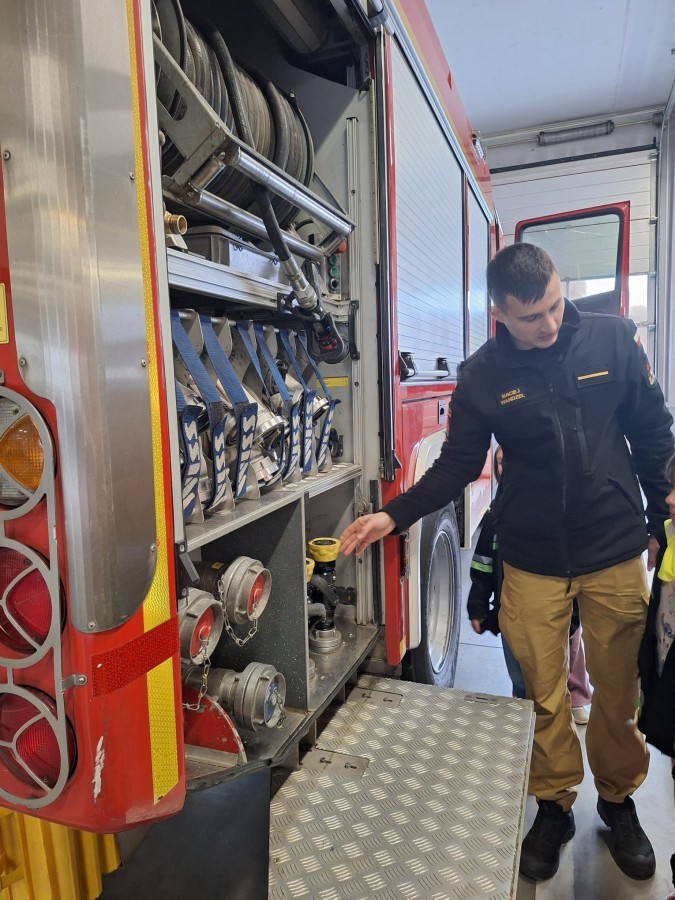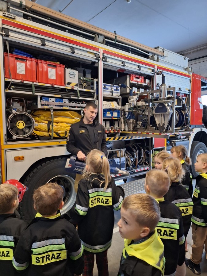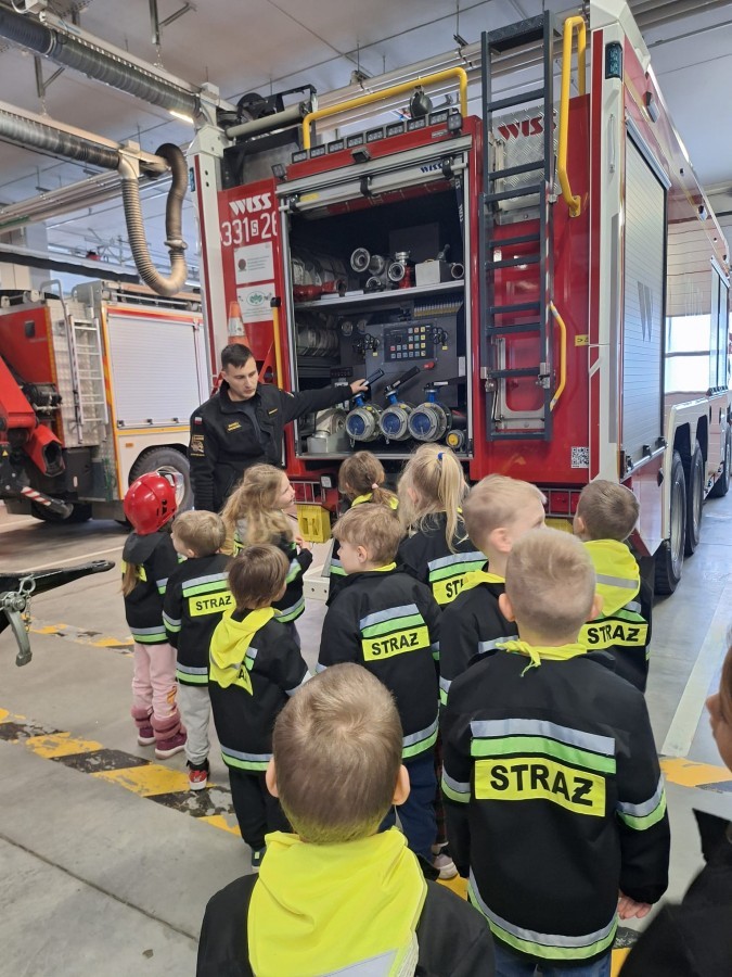Podczas wizyty uczestnicy mieli możliwość obejrzenia specjalistycznego sprzętu ratowniczego oraz wozów strażackich. Ogromne wrażenie zrobiła na wszystkich łódź ratunkowa oraz wyposażenie wykorzystywane podczas akcji. Strażacy opowiedzieli o swojej pracy, pokazali, jak wygląda przygotowanie do wyjazdu i jak ważna jest szybka reakcja w sytuacjach zagrożenia :)