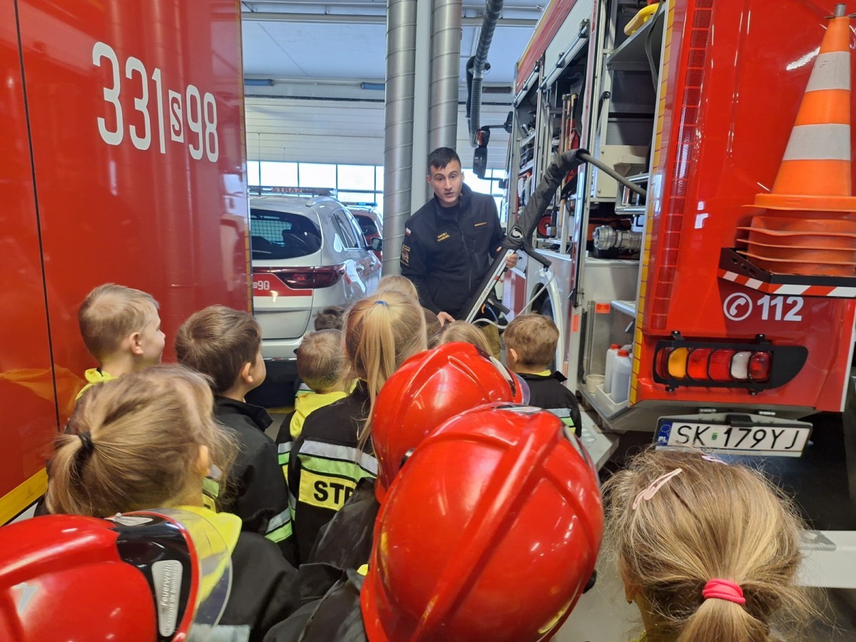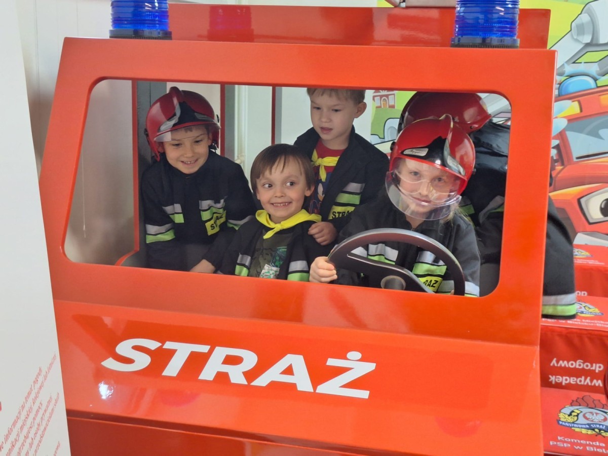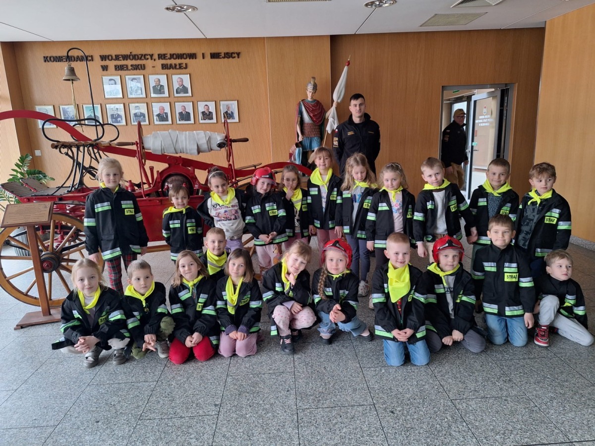 Dziś mieliśmy wyjątkową okazję odwiedzić Komendę Państwowej Straży Pożarnej w Bielsku-Białej, gdzie dzieci mogły z bliska poznać pracę strażaków i zobaczyć ich codzienną służbę.