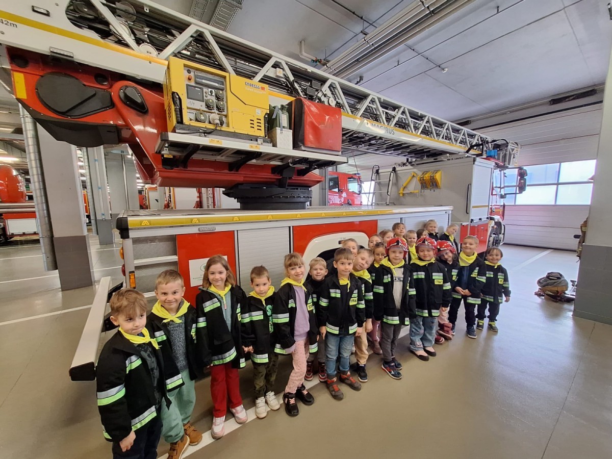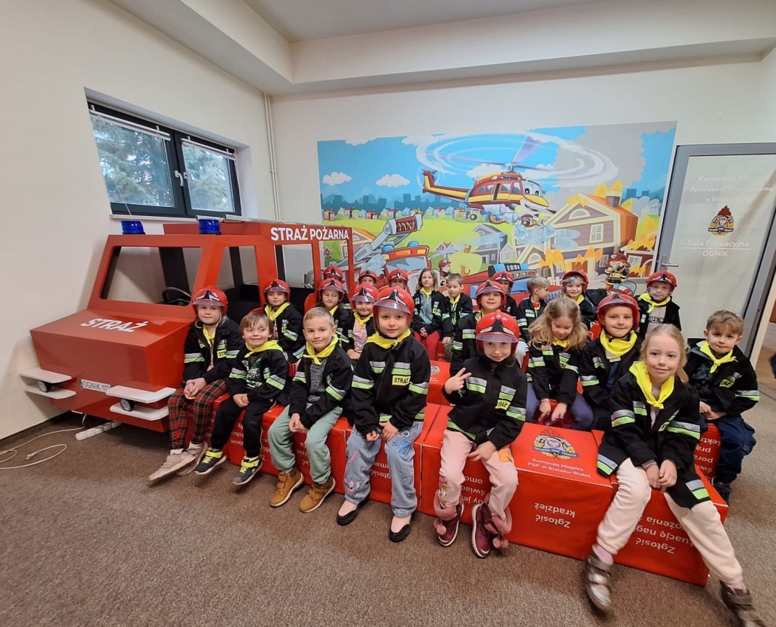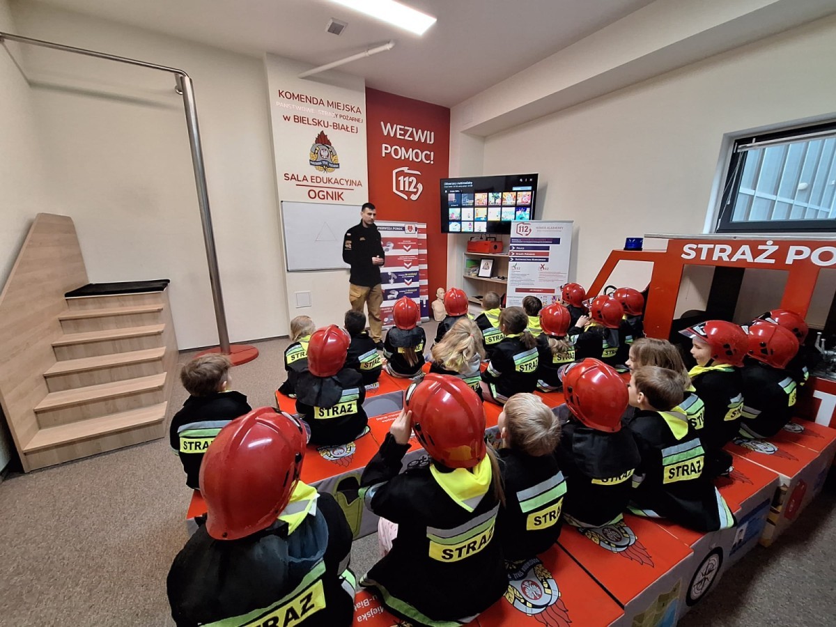 Dziś mieliśmy wyjątkową okazję odwiedzić Komendę Państwowej Straży Pożarnej w Bielsku-Białej, gdzie dzieci mogły z bliska poznać pracę strażaków i zobaczyć ich codzienną służbę.