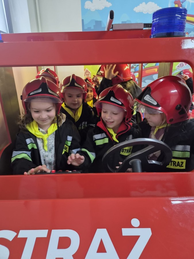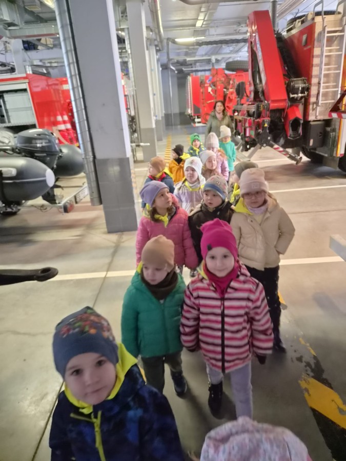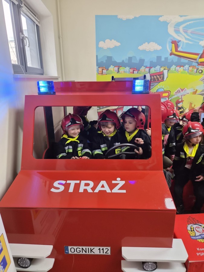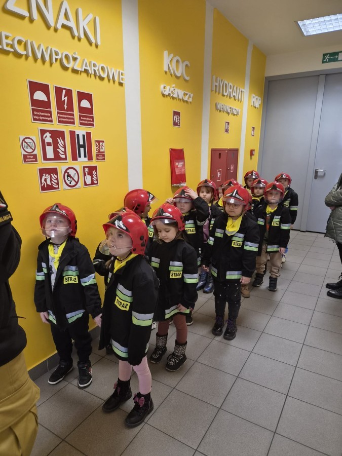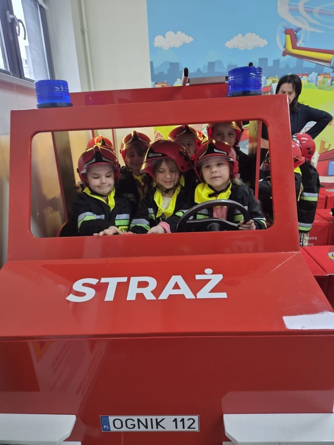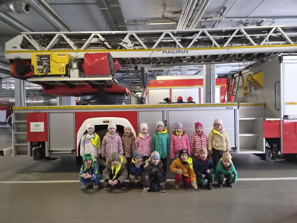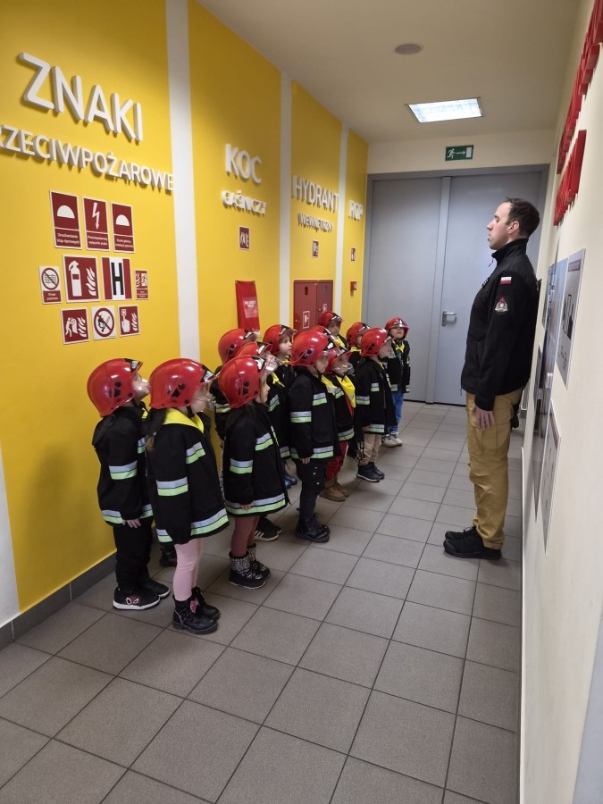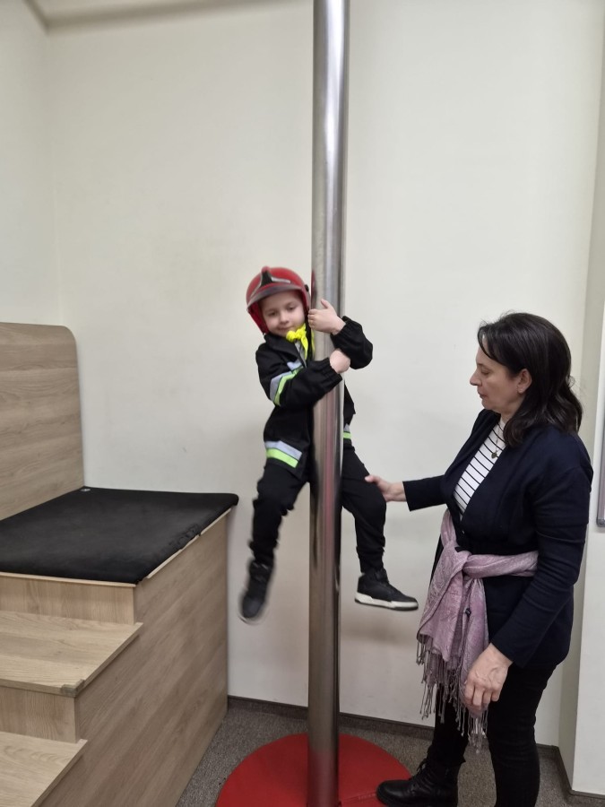 Nasze przedszkolaki miały wyjątkową okazję odwiedzić Komendę Miejską Państwowej Straży Pożarnej w Bielsku-Białej i z bliska poznać pracę strażaków. Już od pierwszych chwil emocji nie brakowało! Dzieci mogły zobaczyć prawdziwy wóz strażacki z ogromną drabiną, poznać jego wyposażenie oraz dowiedzieć się, do jakich akcji jest wykorzystywany. Największą radość sprawiło przymierzanie strażackich hełmów i specjalnych ubrań- przez chwilę każdy mógł poczuć się jak prawdziwy bohater. Podczas zajęć edukacyjnych dzieci uczyły się również zasad bezpieczeństwa oraz tego, jak należy zachować się w sytuacjach zagrożenia. Poprzez zabawę utrwalały wiedzę o numerach alarmowych i pracy służb ratunkowych.
