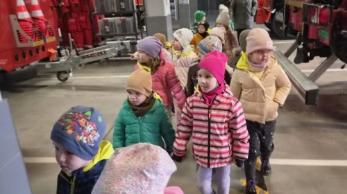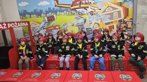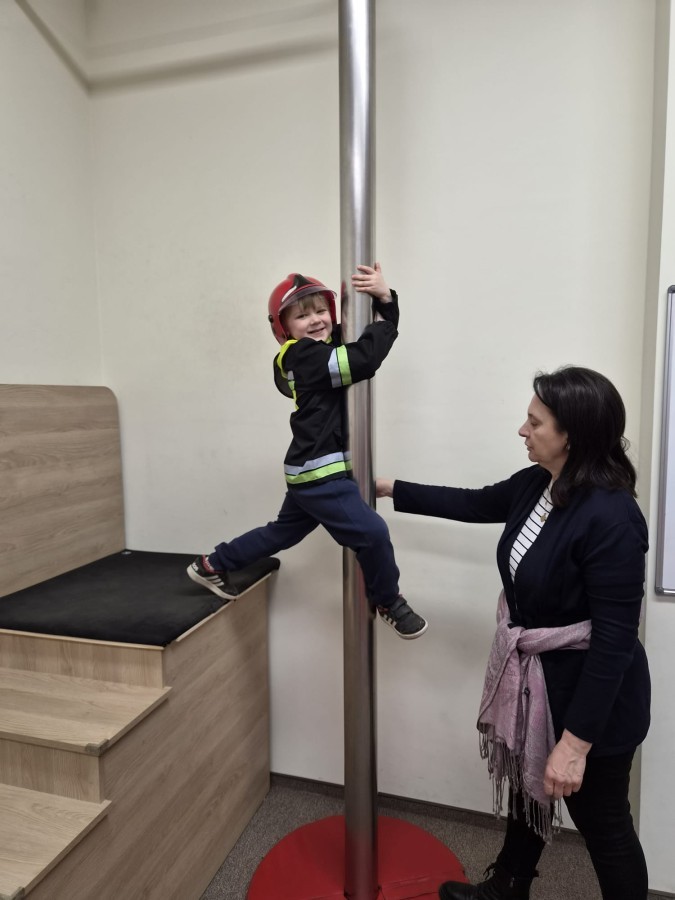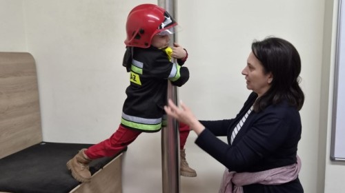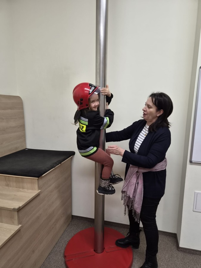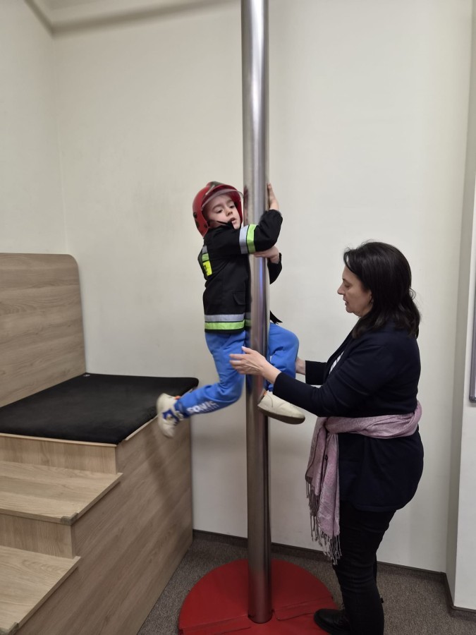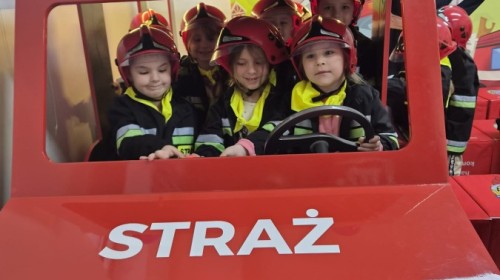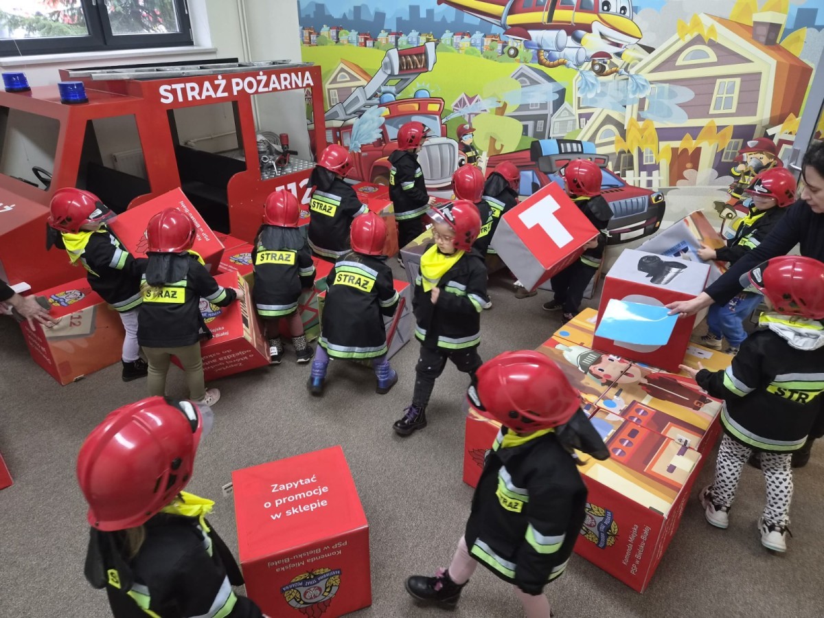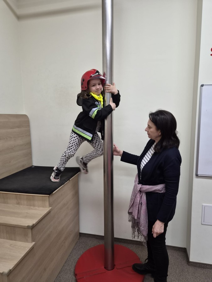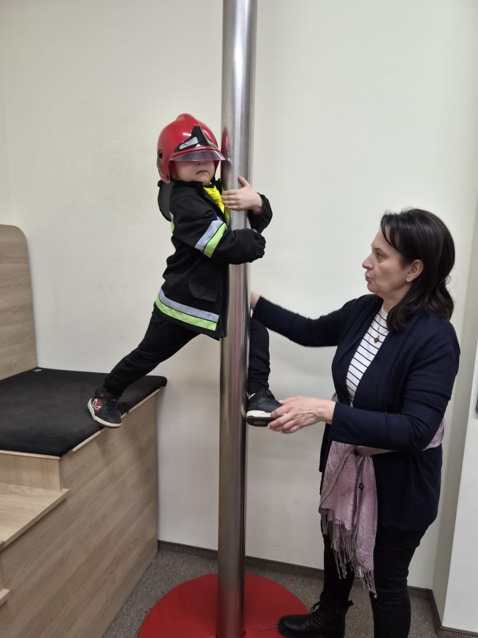 Nasze przedszkolaki miały wyjątkową okazję odwiedzić Komendę Miejską Państwowej Straży Pożarnej w Bielsku-Białej i z bliska poznać pracę strażaków. Już od pierwszych chwil emocji nie brakowało! Dzieci mogły zobaczyć prawdziwy wóz strażacki z ogromną drabiną, poznać jego wyposażenie oraz dowiedzieć się, do jakich akcji jest wykorzystywany. Największą radość sprawiło przymierzanie strażackich hełmów i specjalnych ubrań- przez chwilę każdy mógł poczuć się jak prawdziwy bohater. Podczas zajęć edukacyjnych dzieci uczyły się również zasad bezpieczeństwa oraz tego, jak należy zachować się w sytuacjach zagrożenia. Poprzez zabawę utrwalały wiedzę o numerach alarmowych i pracy służb ratunkowych.
