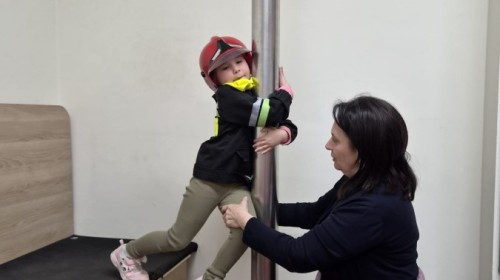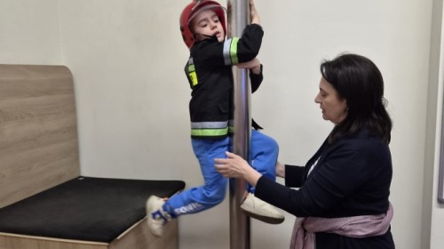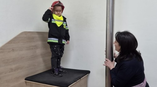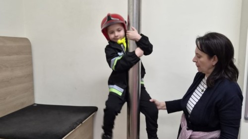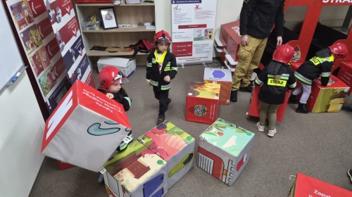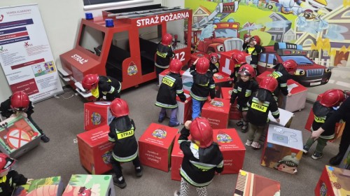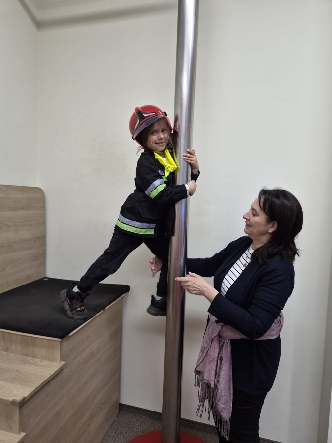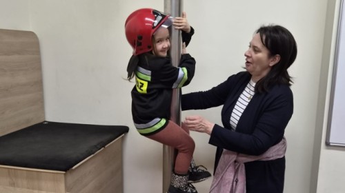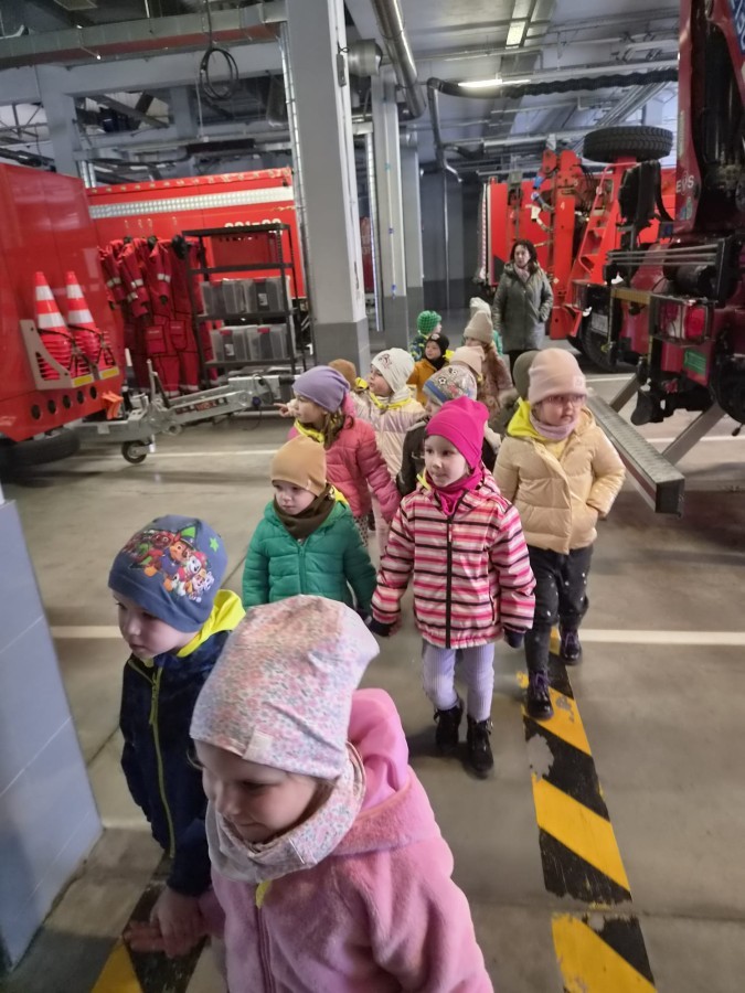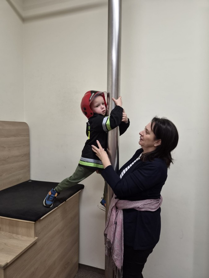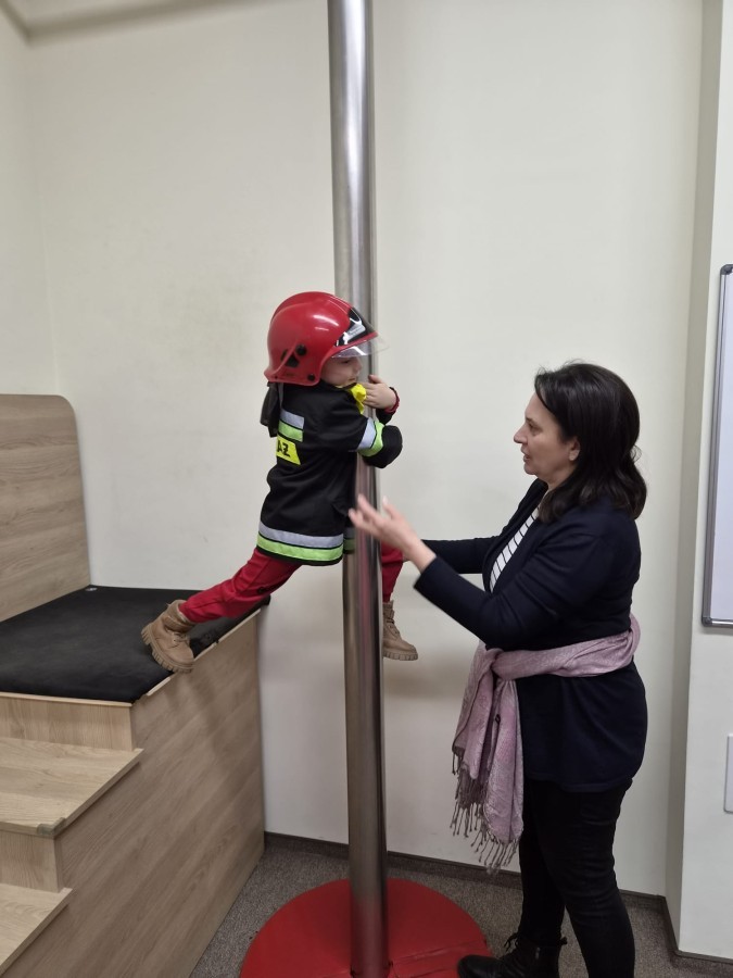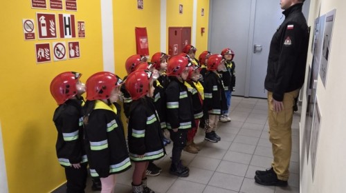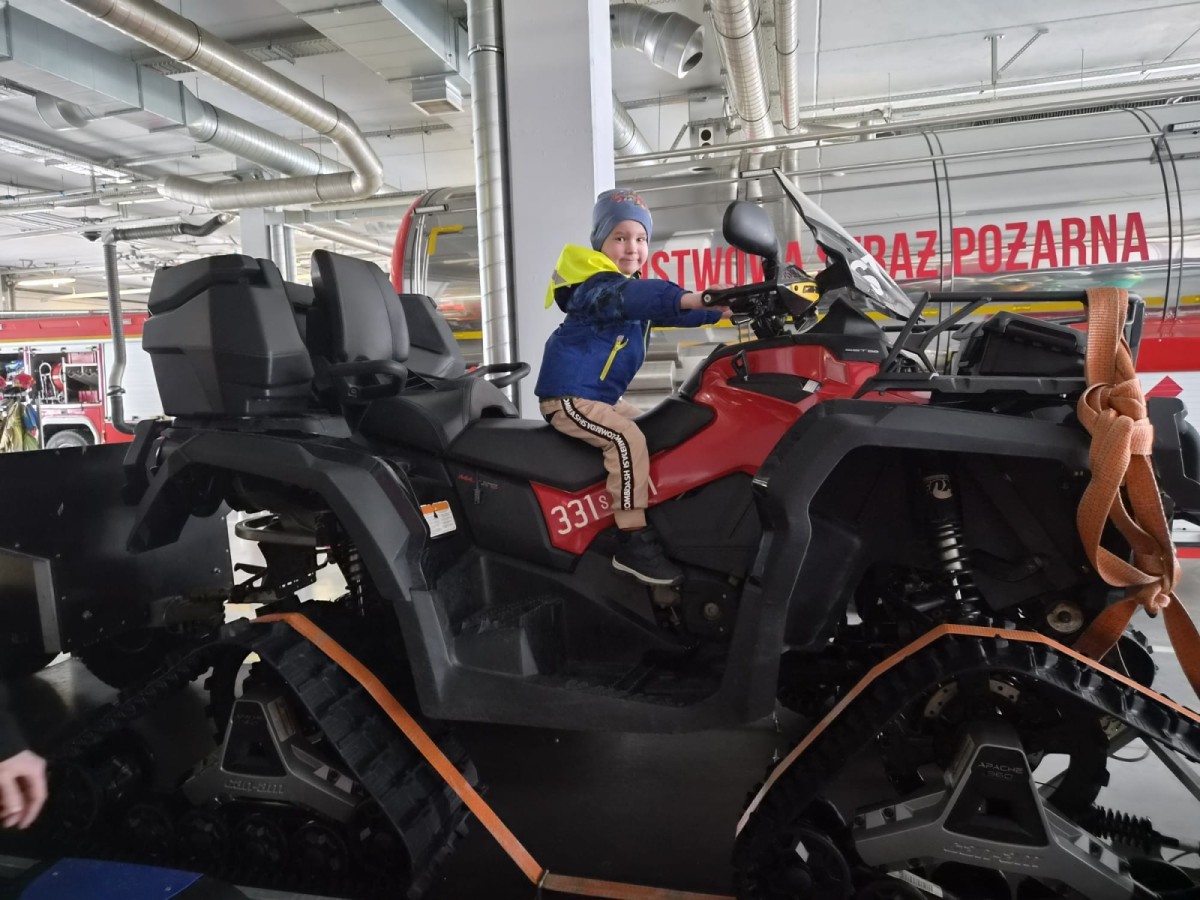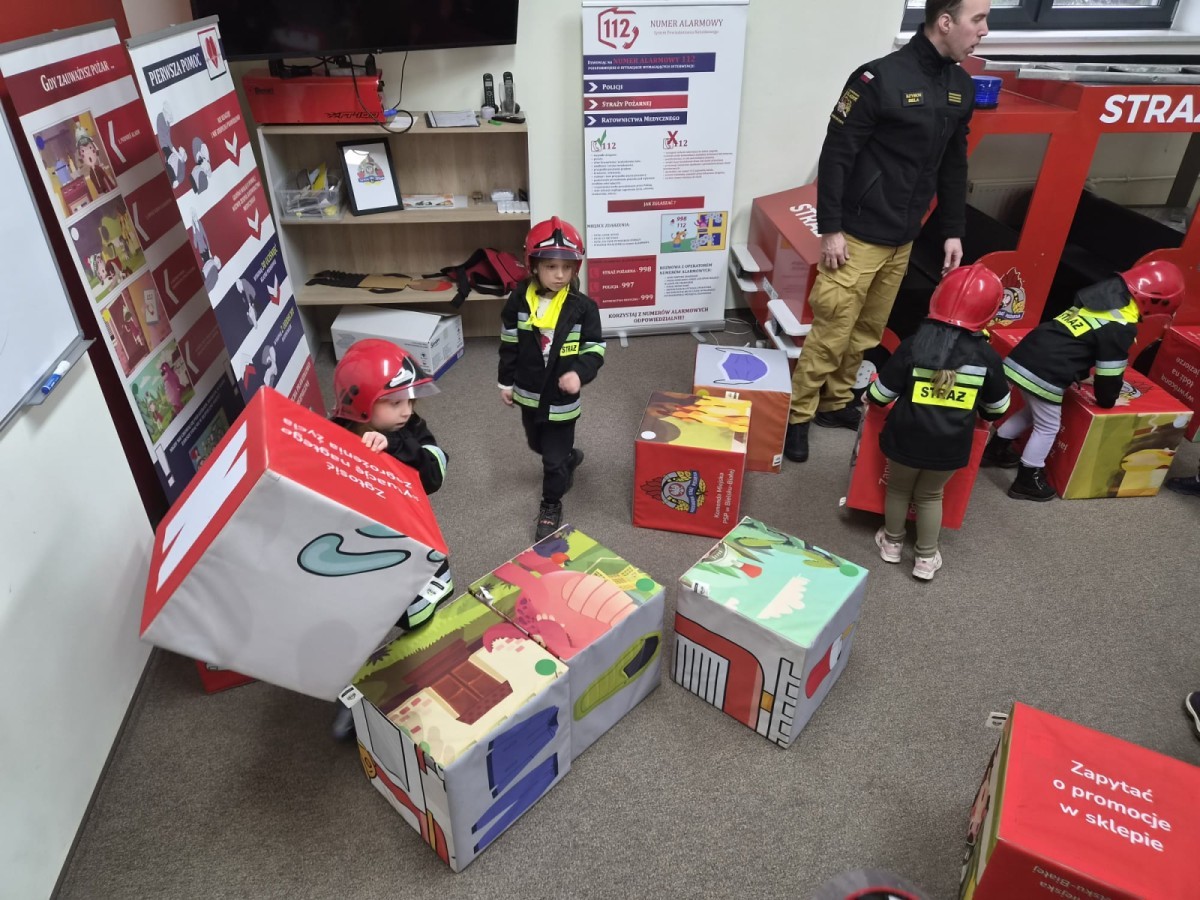 Nasze przedszkolaki miały wyjątkową okazję odwiedzić Komendę Miejską Państwowej Straży Pożarnej w Bielsku-Białej i z bliska poznać pracę strażaków. Już od pierwszych chwil emocji nie brakowało! Dzieci mogły zobaczyć prawdziwy wóz strażacki z ogromną drabiną, poznać jego wyposażenie oraz dowiedzieć się, do jakich akcji jest wykorzystywany. Największą radość sprawiło przymierzanie strażackich hełmów i specjalnych ubrań- przez chwilę każdy mógł poczuć się jak prawdziwy bohater. Podczas zajęć edukacyjnych dzieci uczyły się również zasad bezpieczeństwa oraz tego, jak należy zachować się w sytuacjach zagrożenia. Poprzez zabawę utrwalały wiedzę o numerach alarmowych i pracy służb ratunkowych.