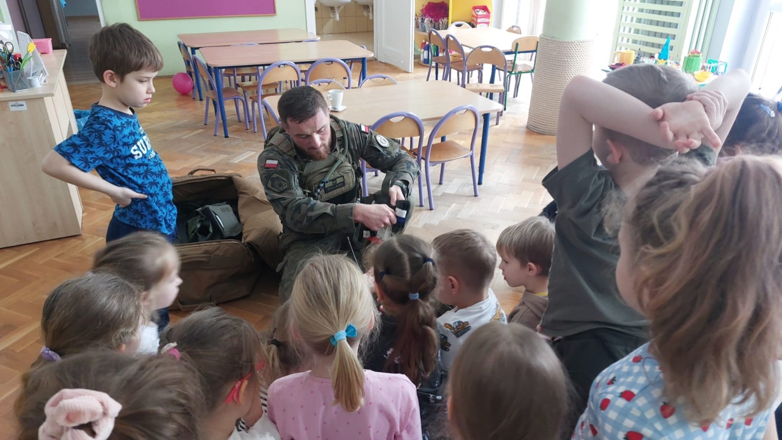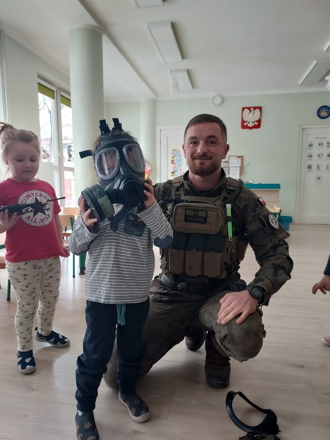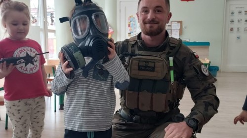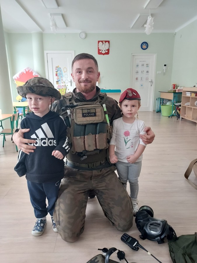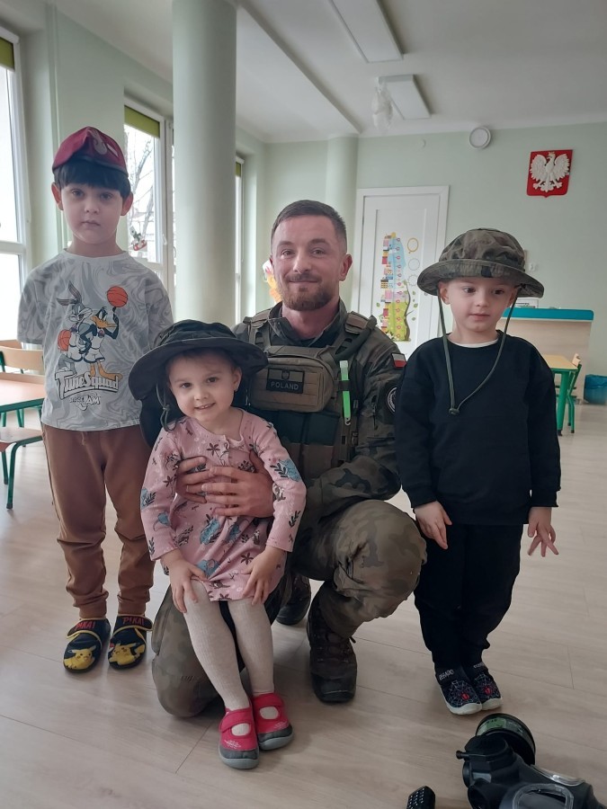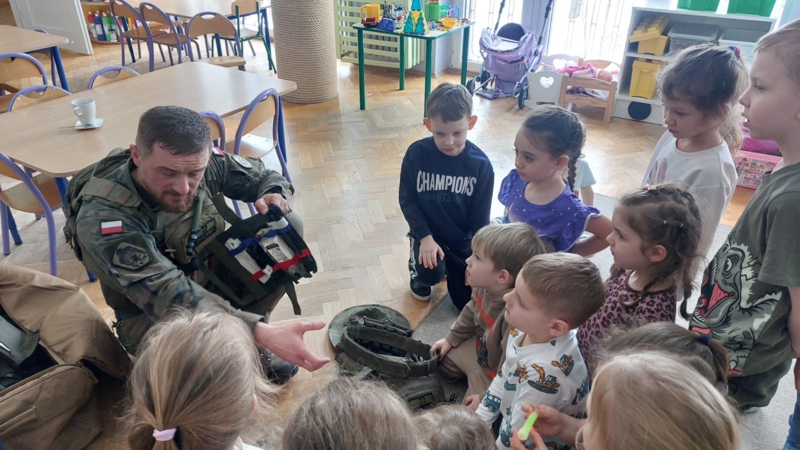 Przedszkolaki z ogromnym zainteresowaniem słuchały opowieści o służbie wojskowej, zadawały pytania i miały okazję zobaczyć elementy żołnierskiego wyposażenia. Dzieci dowiedziały się, czym jest odwaga, odpowiedzialność oraz pomoc innym :)