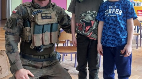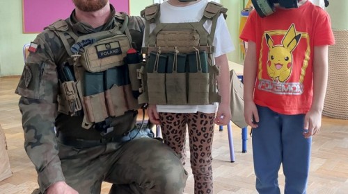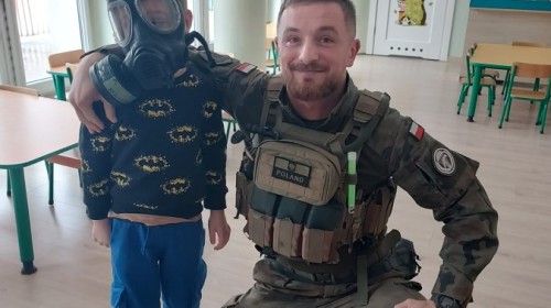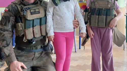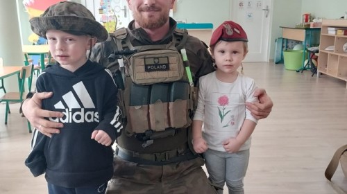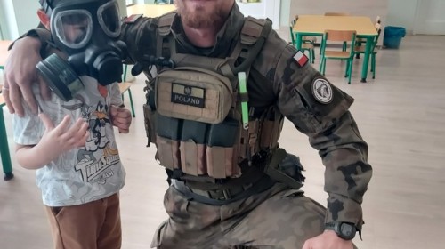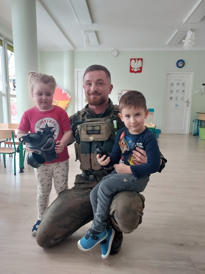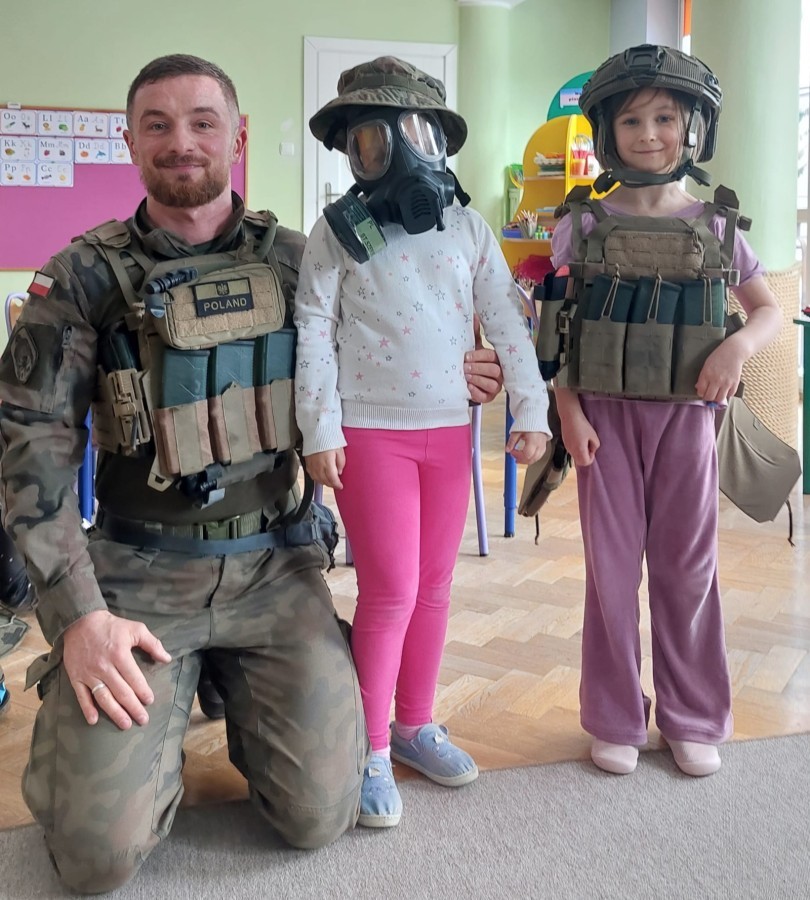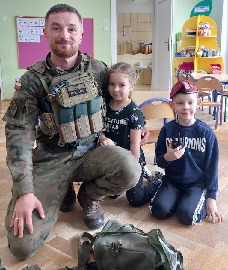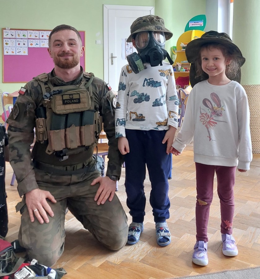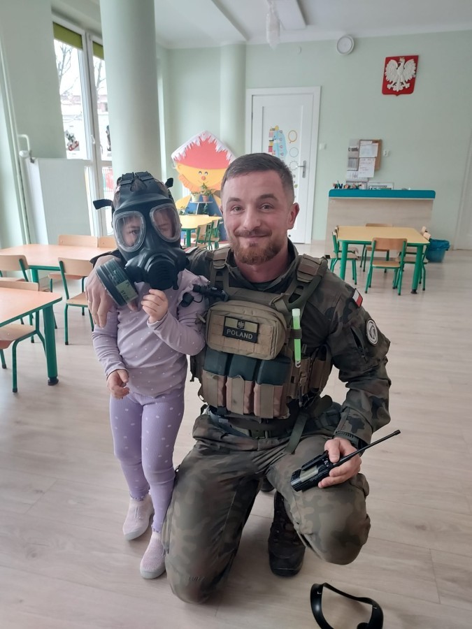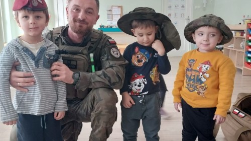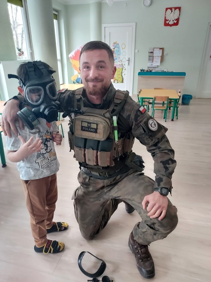 Przedszkolaki z ogromnym zainteresowaniem słuchały opowieści o służbie wojskowej, zadawały pytania i miały okazję zobaczyć elementy żołnierskiego wyposażenia. Dzieci dowiedziały się, czym jest odwaga, odpowiedzialność oraz pomoc innym :)