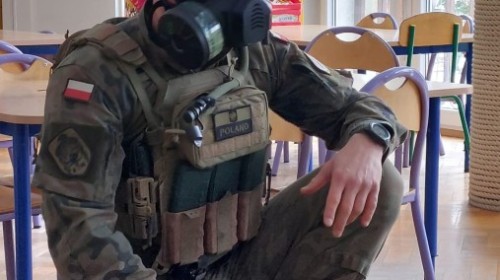 Dzisiaj nasze przedszkole odwiedził wyjątkowy gość- Żołnierz Wojska Polskiego. Spotkanie było dla dzieci niezwykle interesującą i wartościową lekcją patriotyzmu oraz bezpieczeństwa.